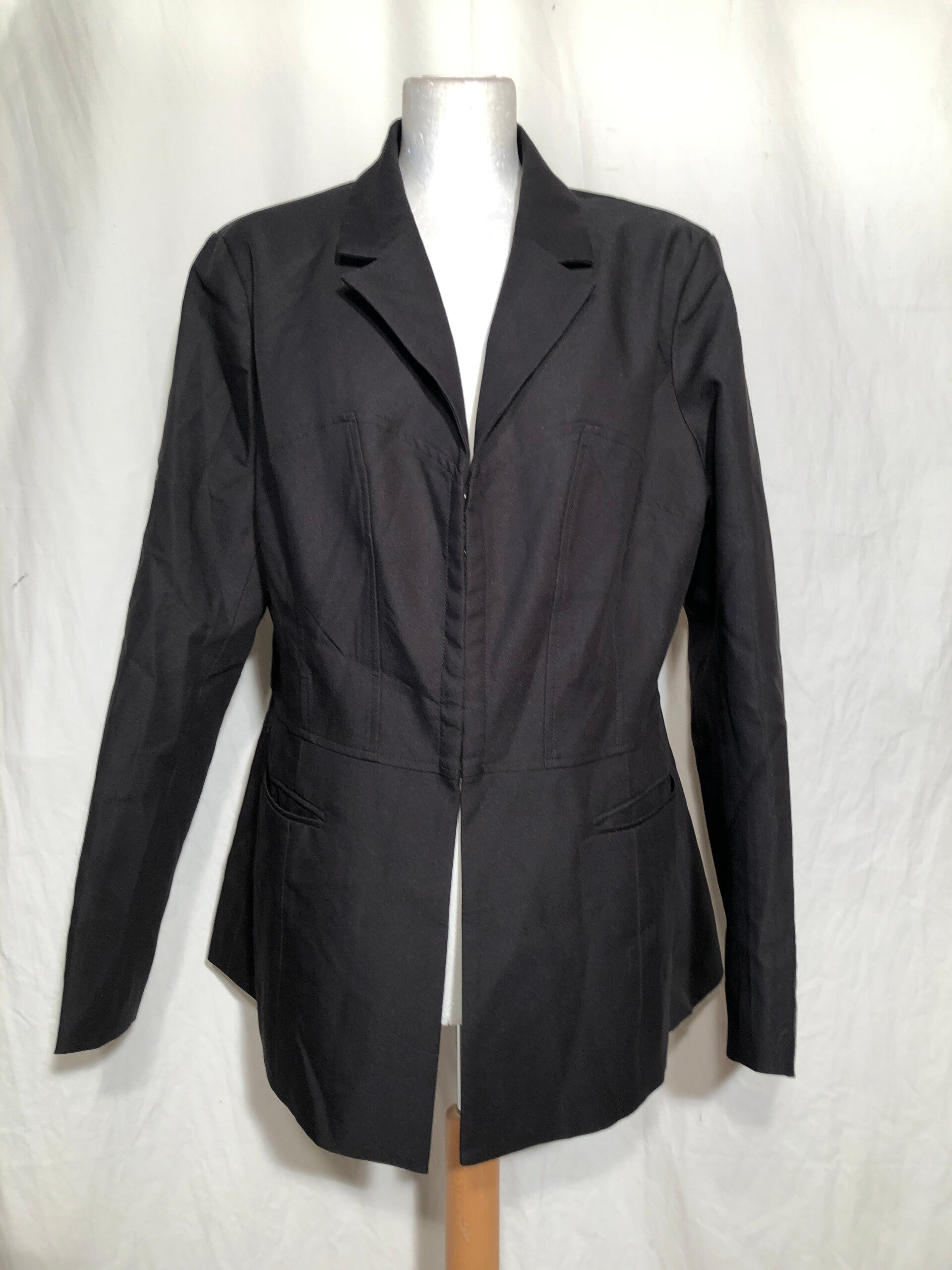 FashionNova zwarte blazer met zakken op de zij, split op de achterzijde en sluit met rij haakjes maat XL