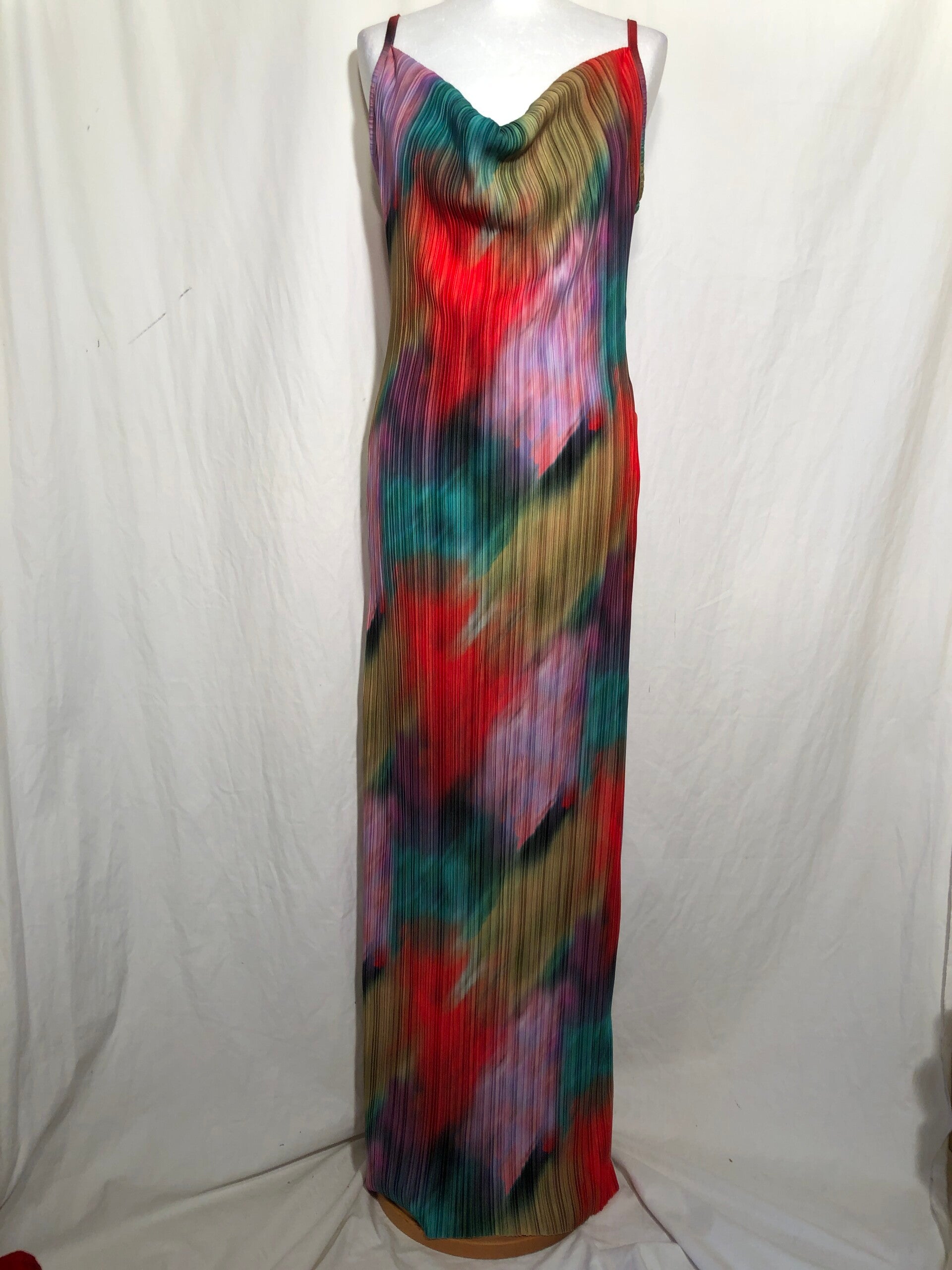 pretty little thing regenboog plissé lang waterval jurk maat 46