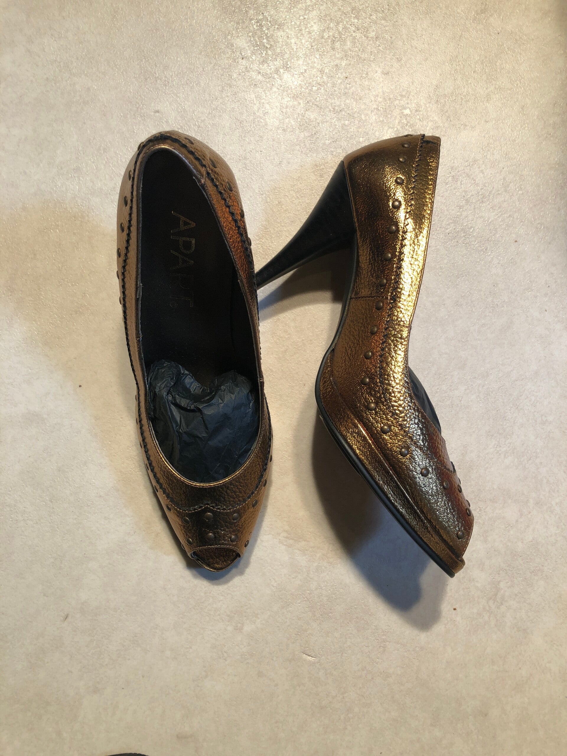 Apart goudkleurige lederen peeptoe pumps met studs maat 38
