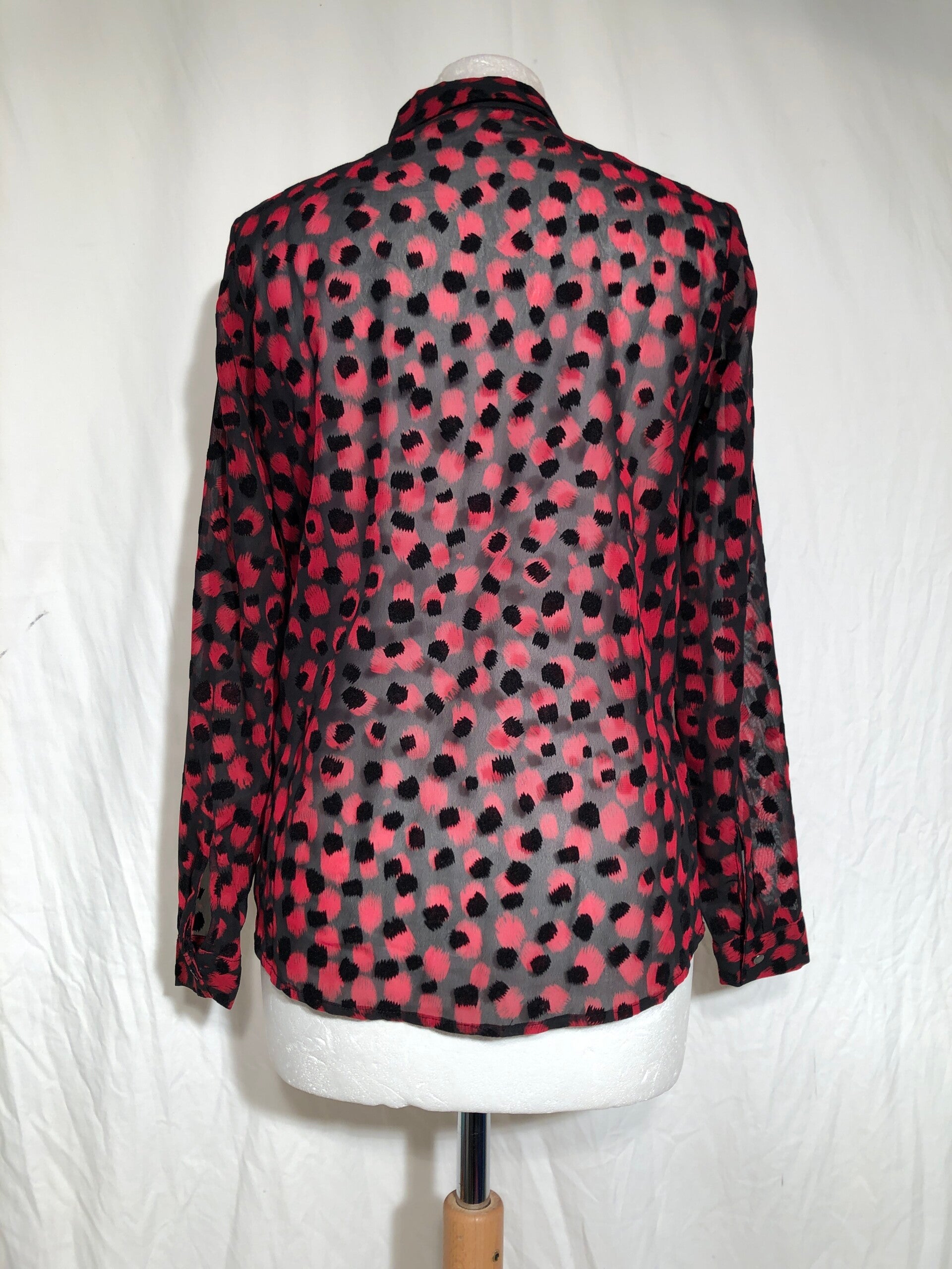 Garcia zwart/rood doorschijnende blouse met zwart velours opdruk maat XS