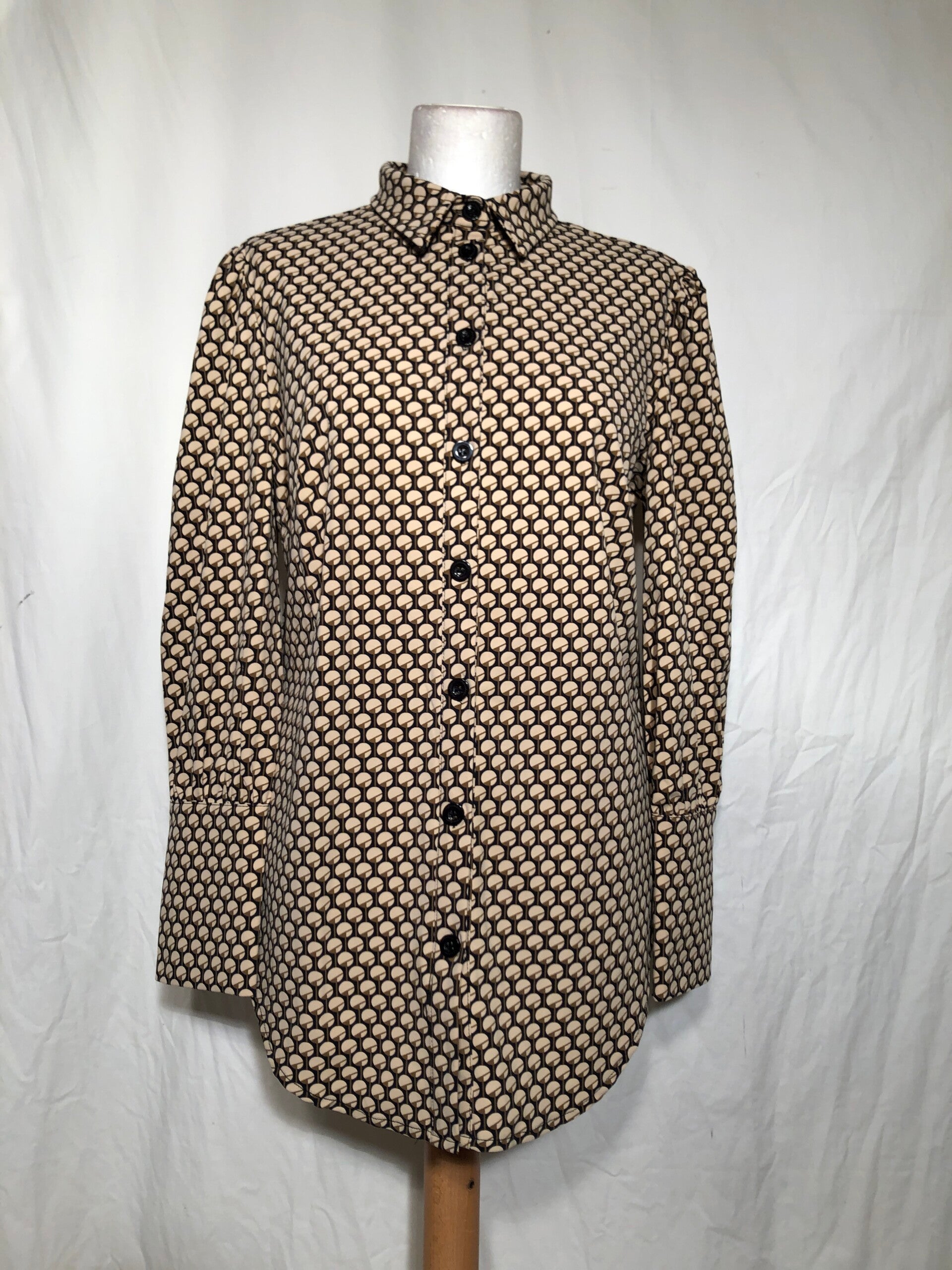 Ambika beige/zwart/bruin print blouse maat L
