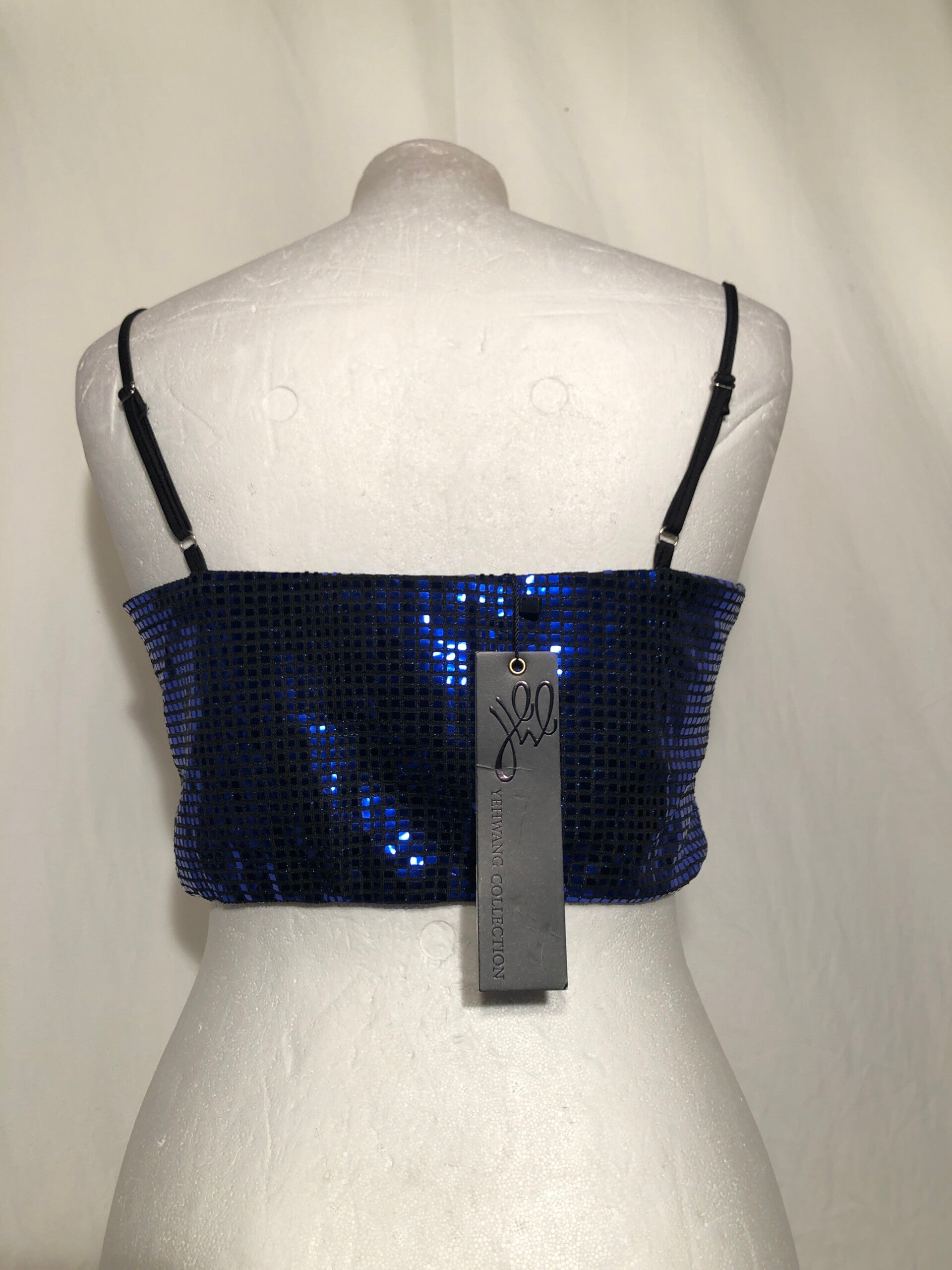 Yewang blauw/zwart pailletten topje met verstelbare schouderbandjes maat S