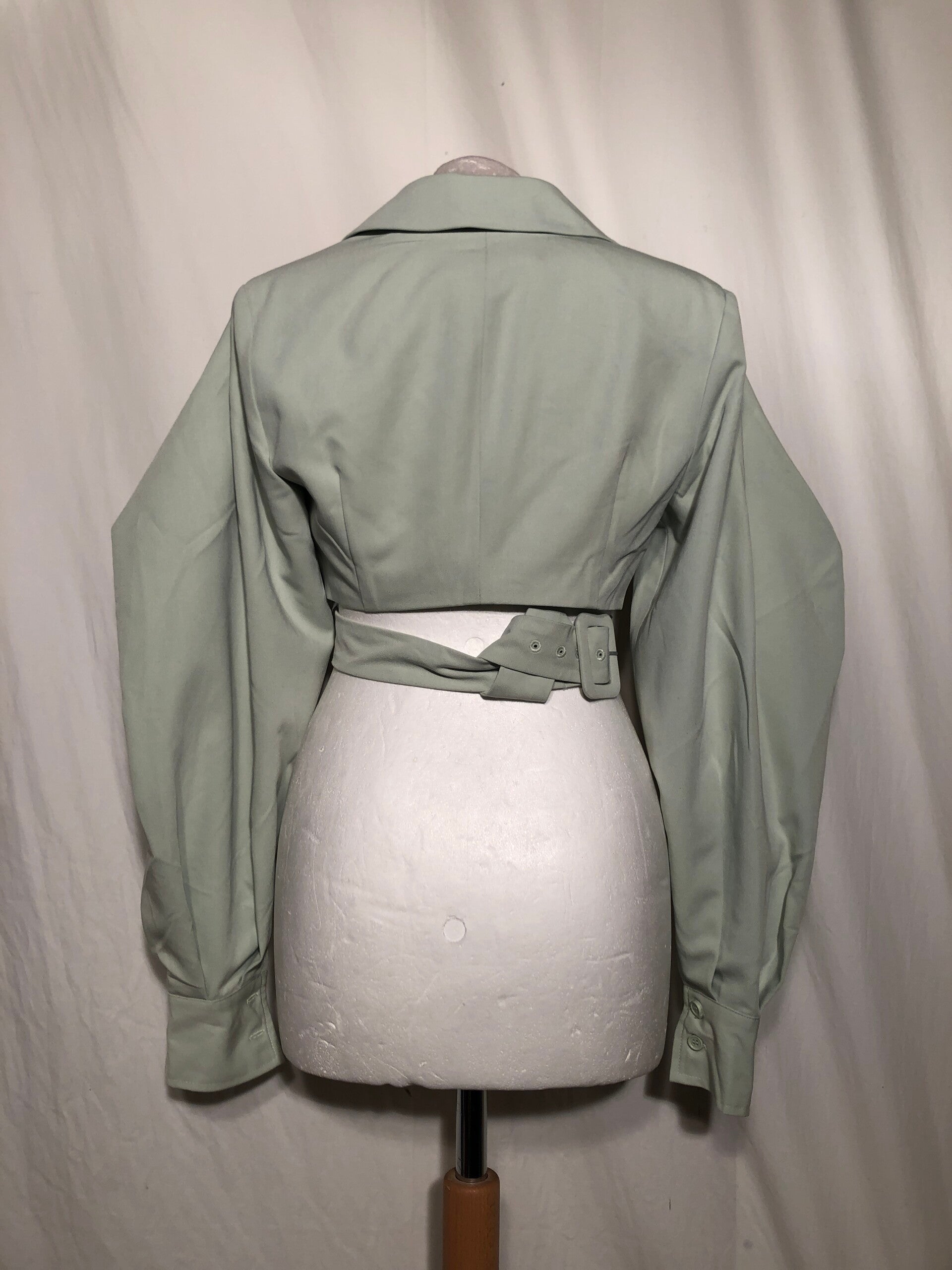 NA-KD mintgroen kort jasje met ceintuur rondom de taille en vleermuis mouwen maat 36