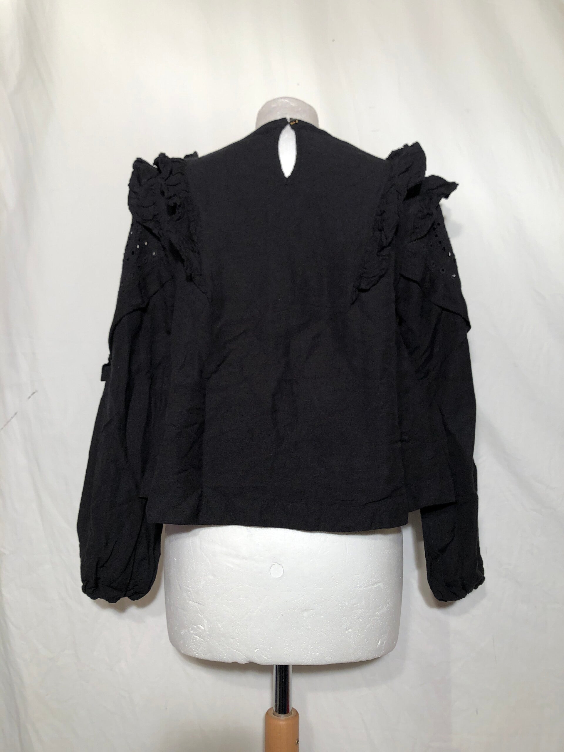 Scotch &Soda zwart tuniek met broderie op de buste en mouwen en ruches langs de mouwen maat XS