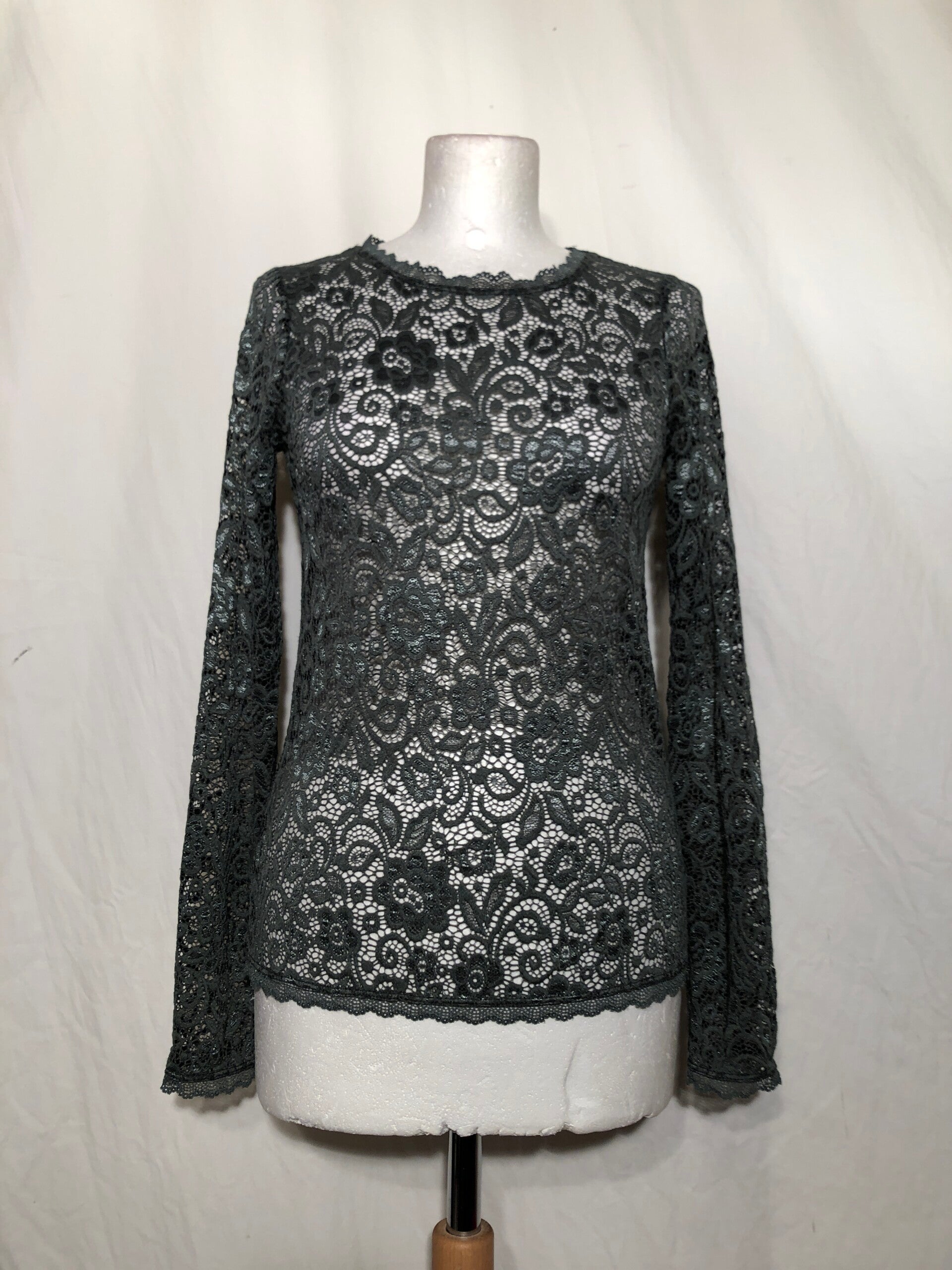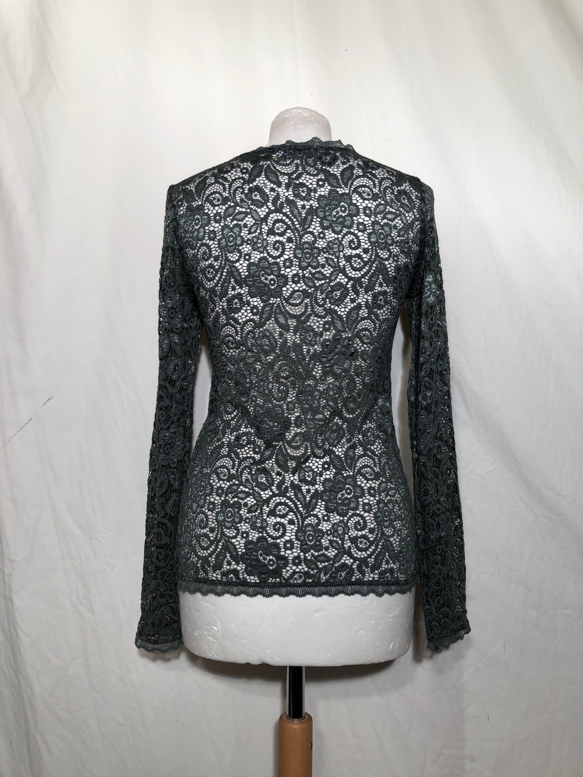 Cotton club groen doorschijnend kanten longsleeve maat M