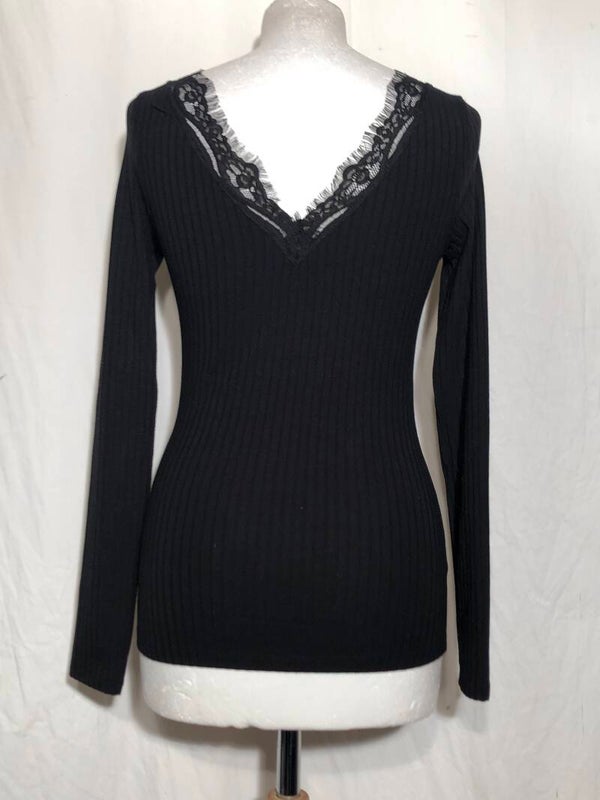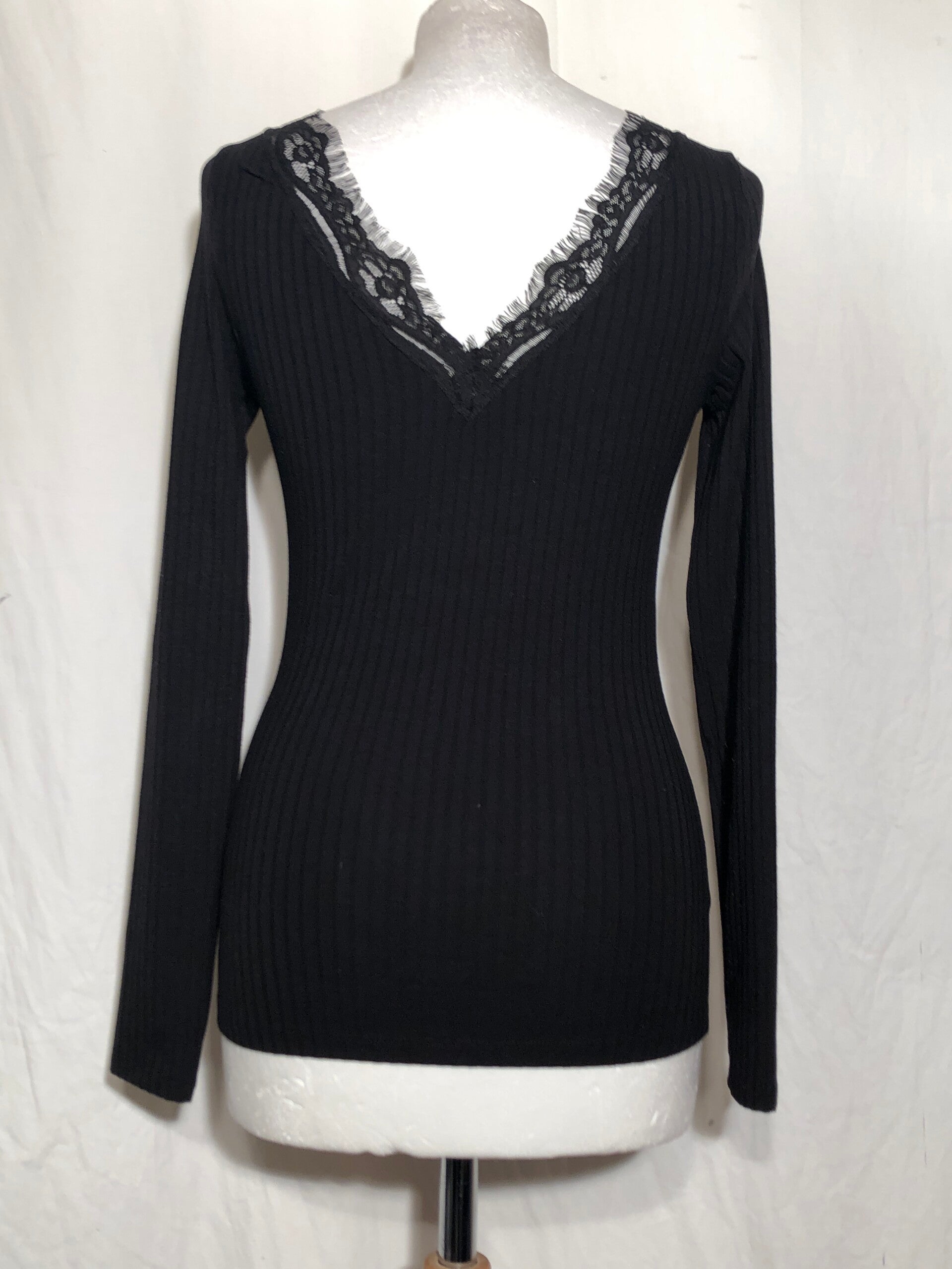 NA-KD zwart longsleeve met V hals en kant maat XS