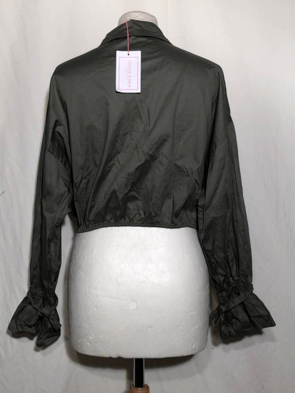Sophie & Me groene blouse met strikken op de voorkant en mouwen maat M