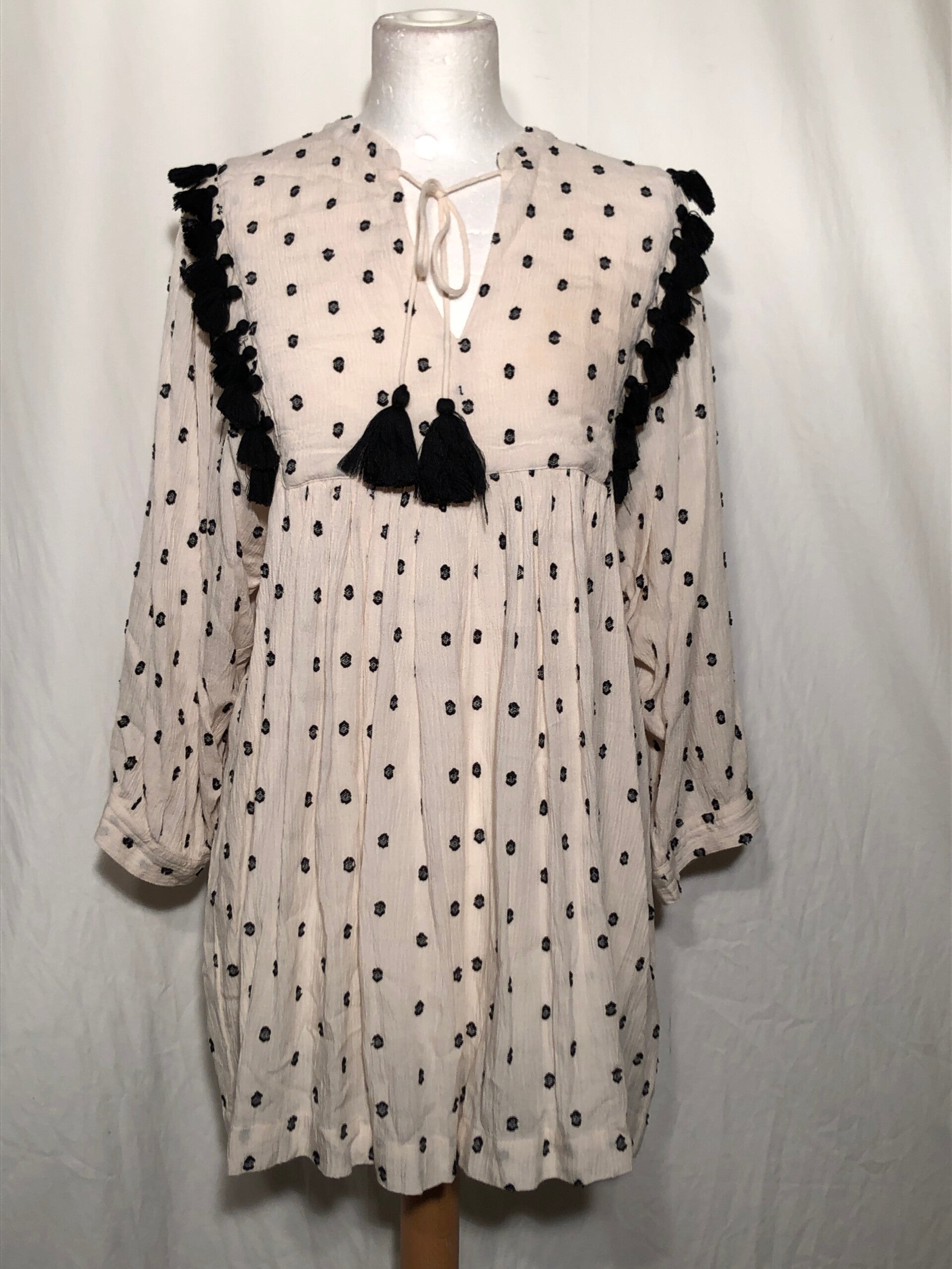 Masai crème kleurig tuniek met zwart borduur en strik sluiting op de borst maat M