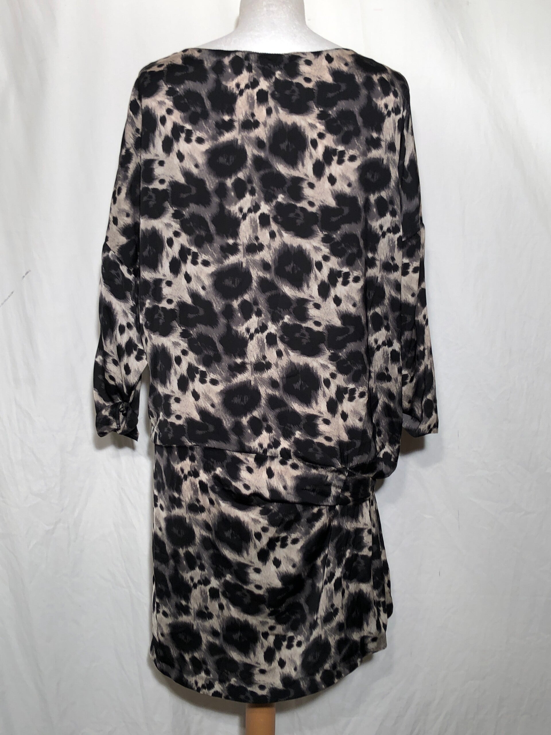 Zara zwart/grijs/beige print jurk met strik op de heup maat M