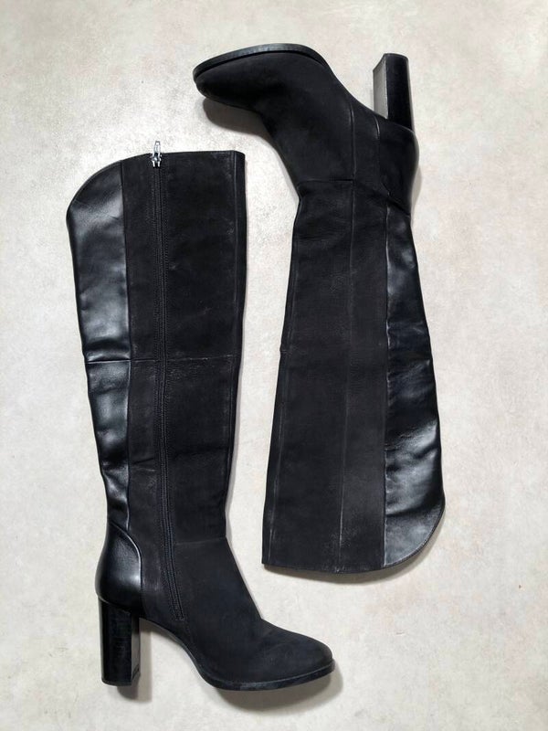 Sacha Essentials zwart leren overknee laarzen met hak en rits op de zij maat 38