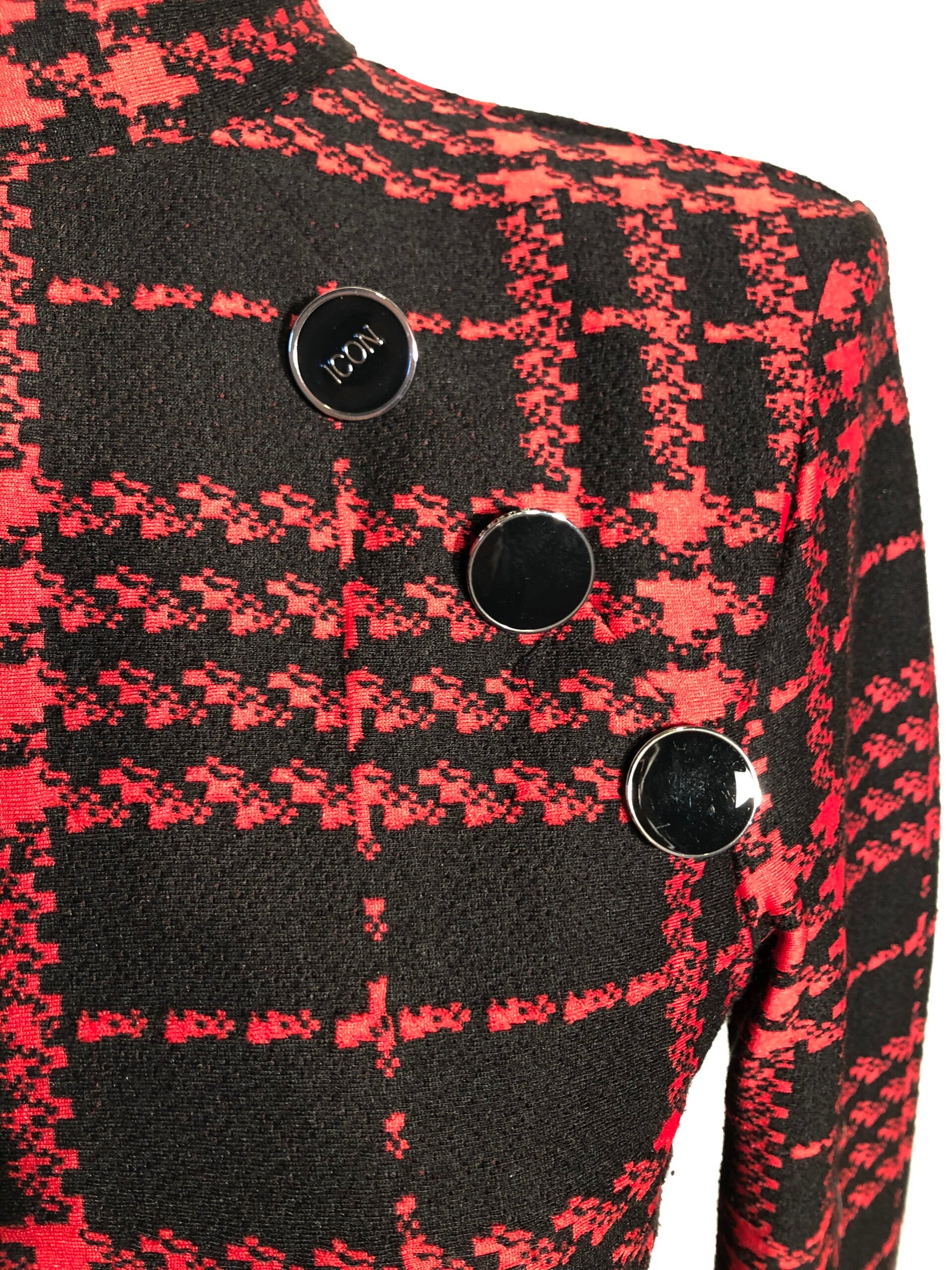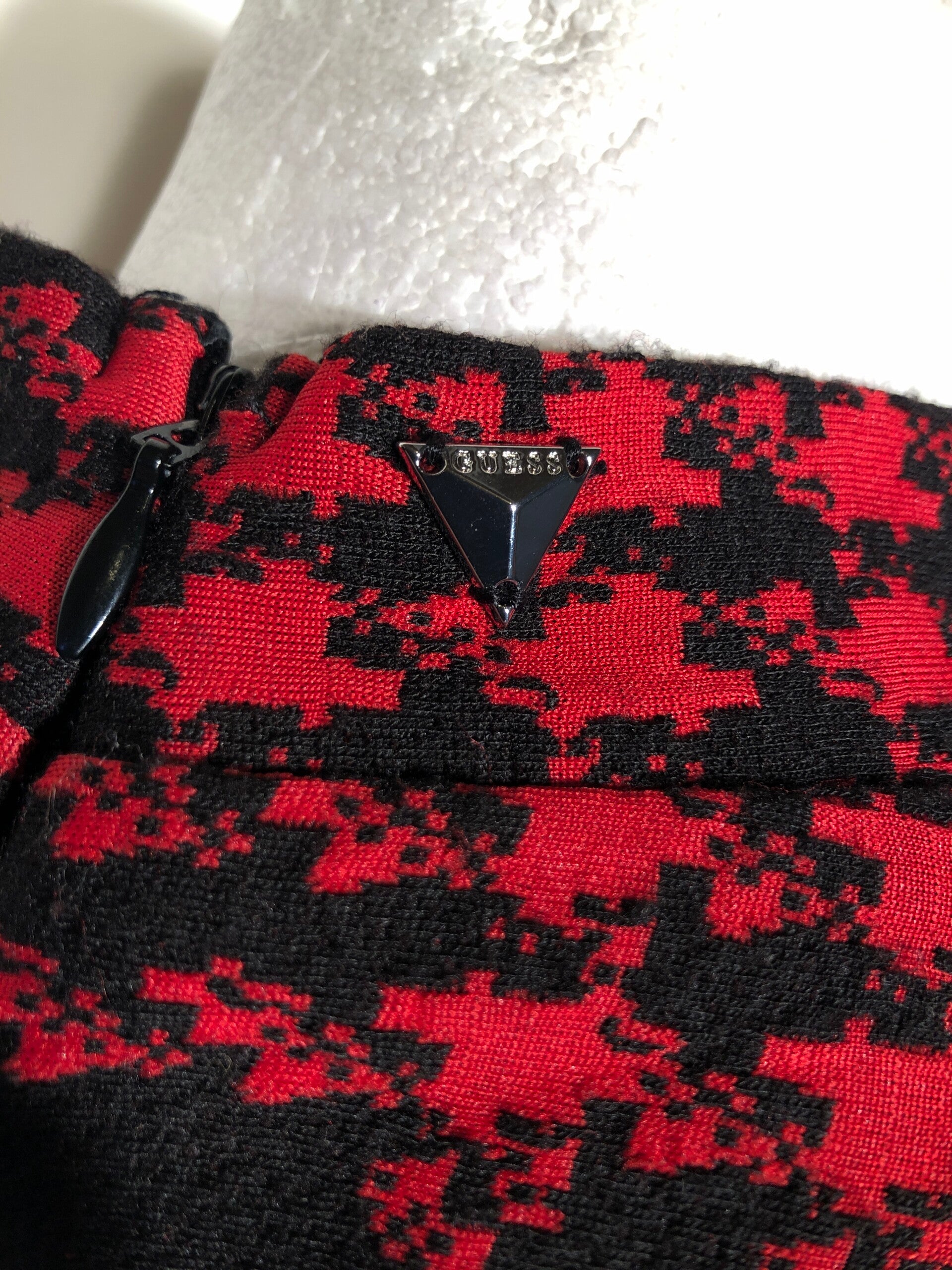 Guess zwart/rood geruite jurk met sierknopen op de schouder en schoudervullingen maat S