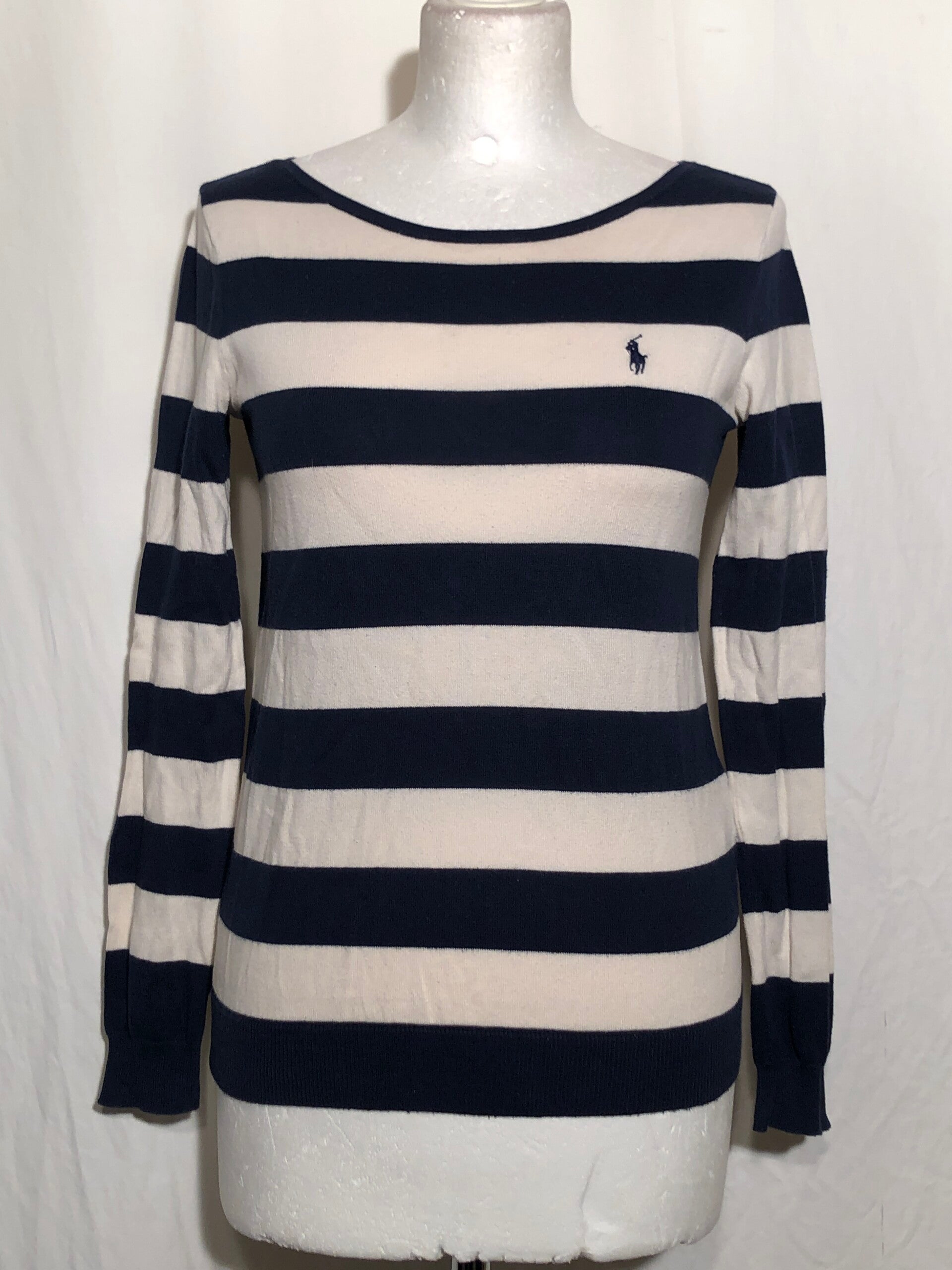 Ralph Lauren sport crème/donkerblauw gestreept truitje maat S