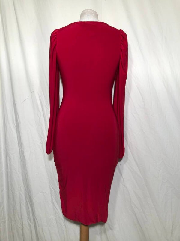 Pretry body rode krinkel cocktail jurk met diep decolleté maat S