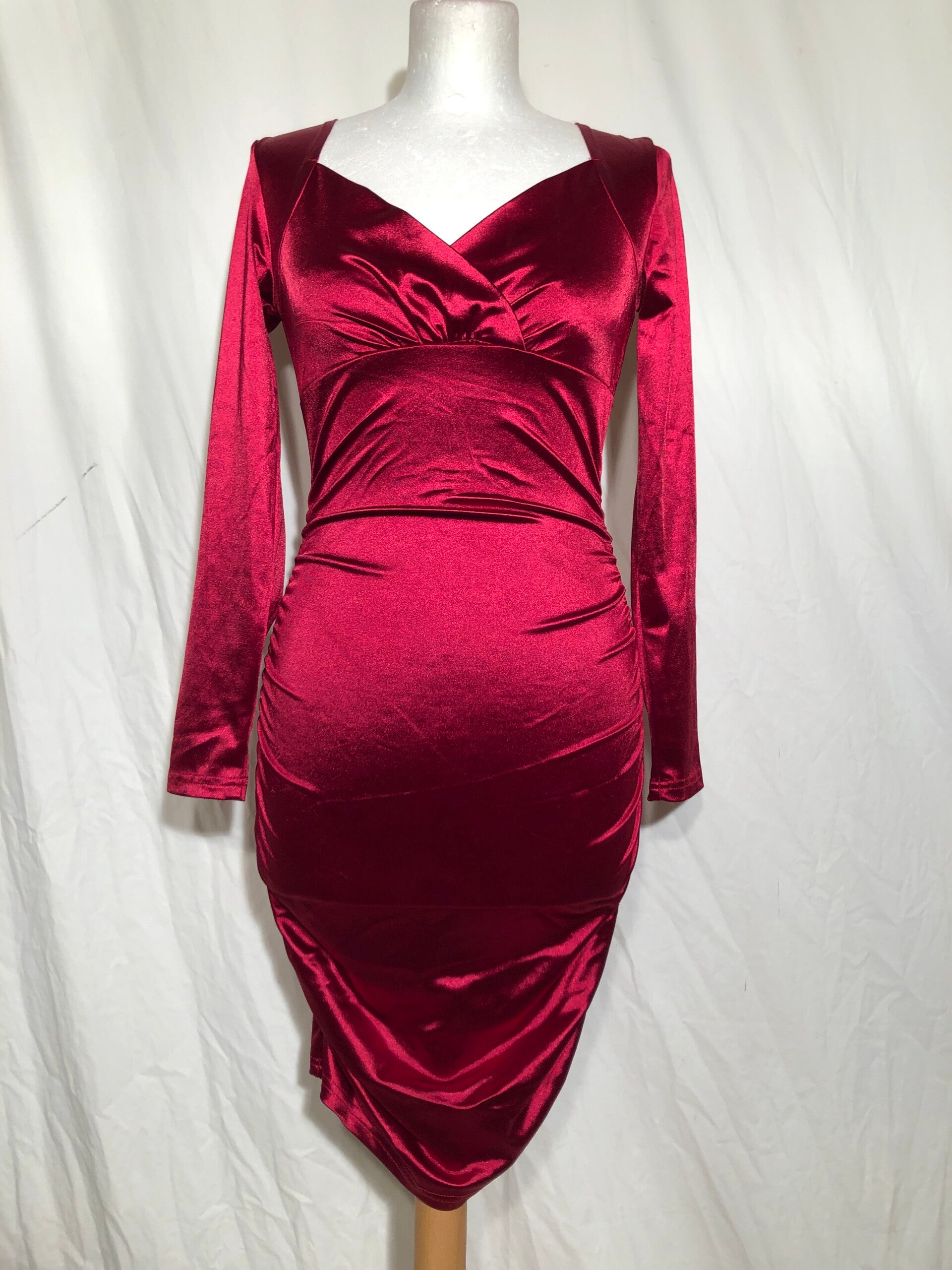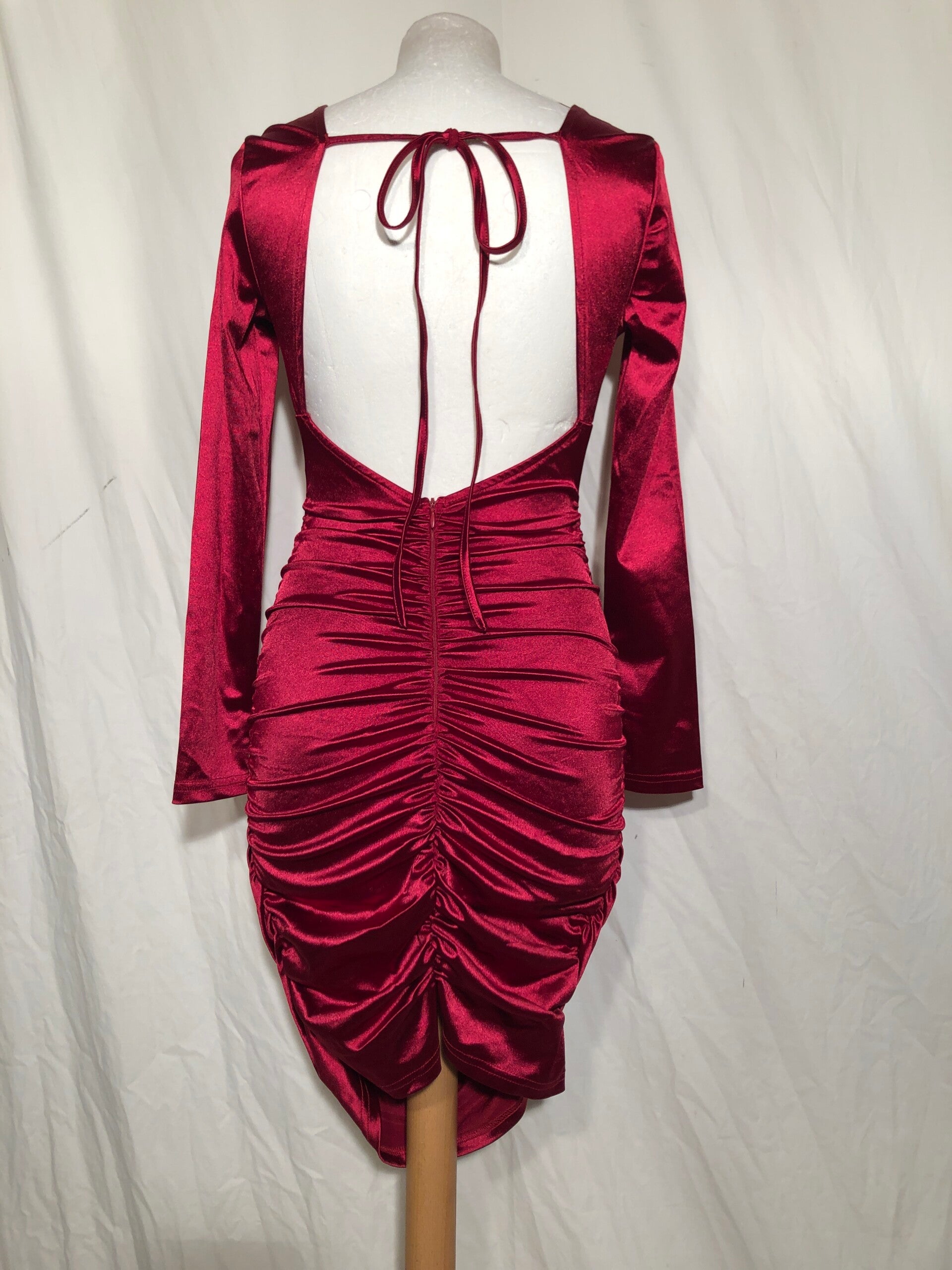Donkerrode cocktail jurk met laag uitgesneden rug maat XS