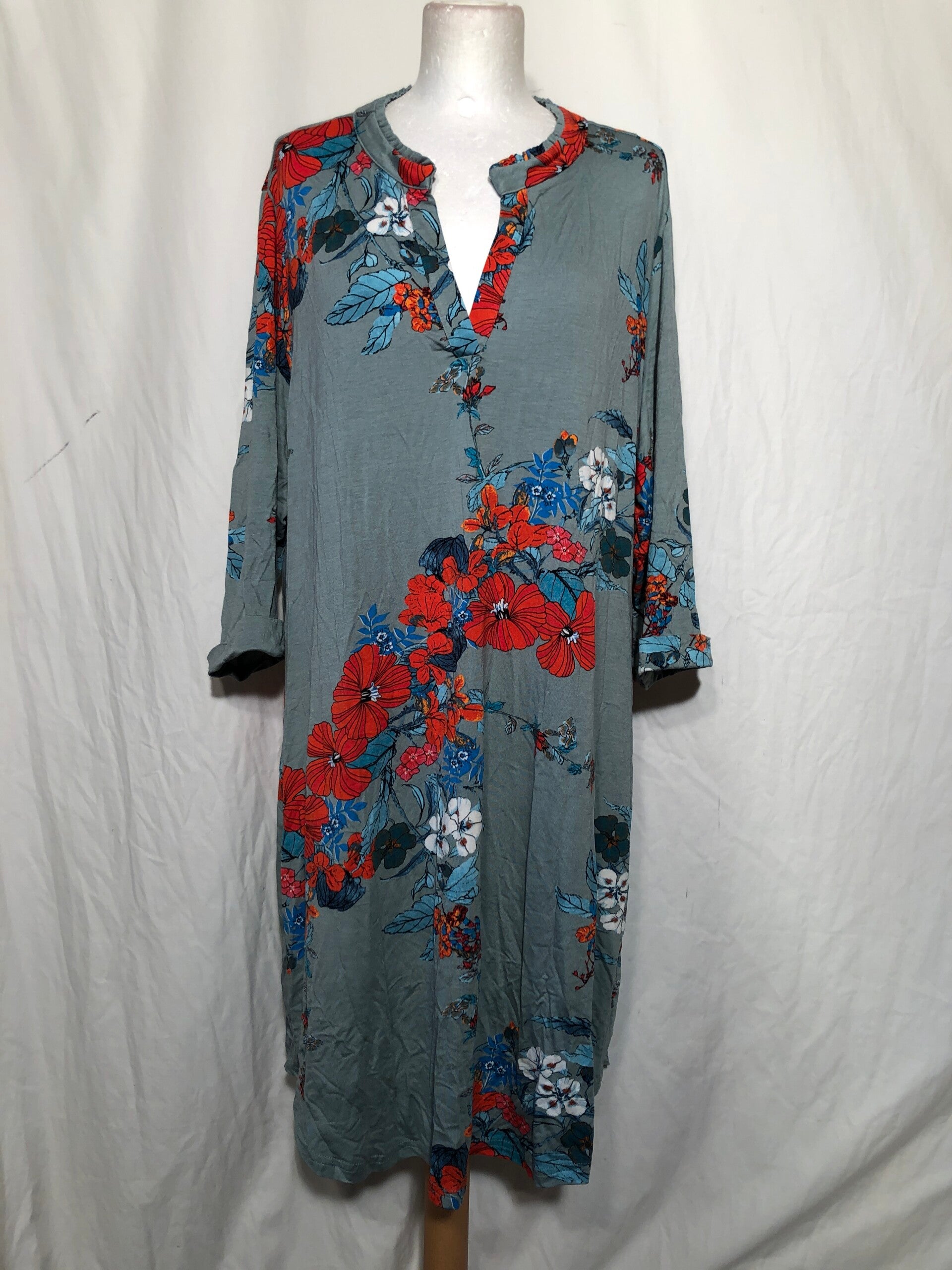 Didi zachtgroene jurk met bloemen en driekwart mouwen maat 48