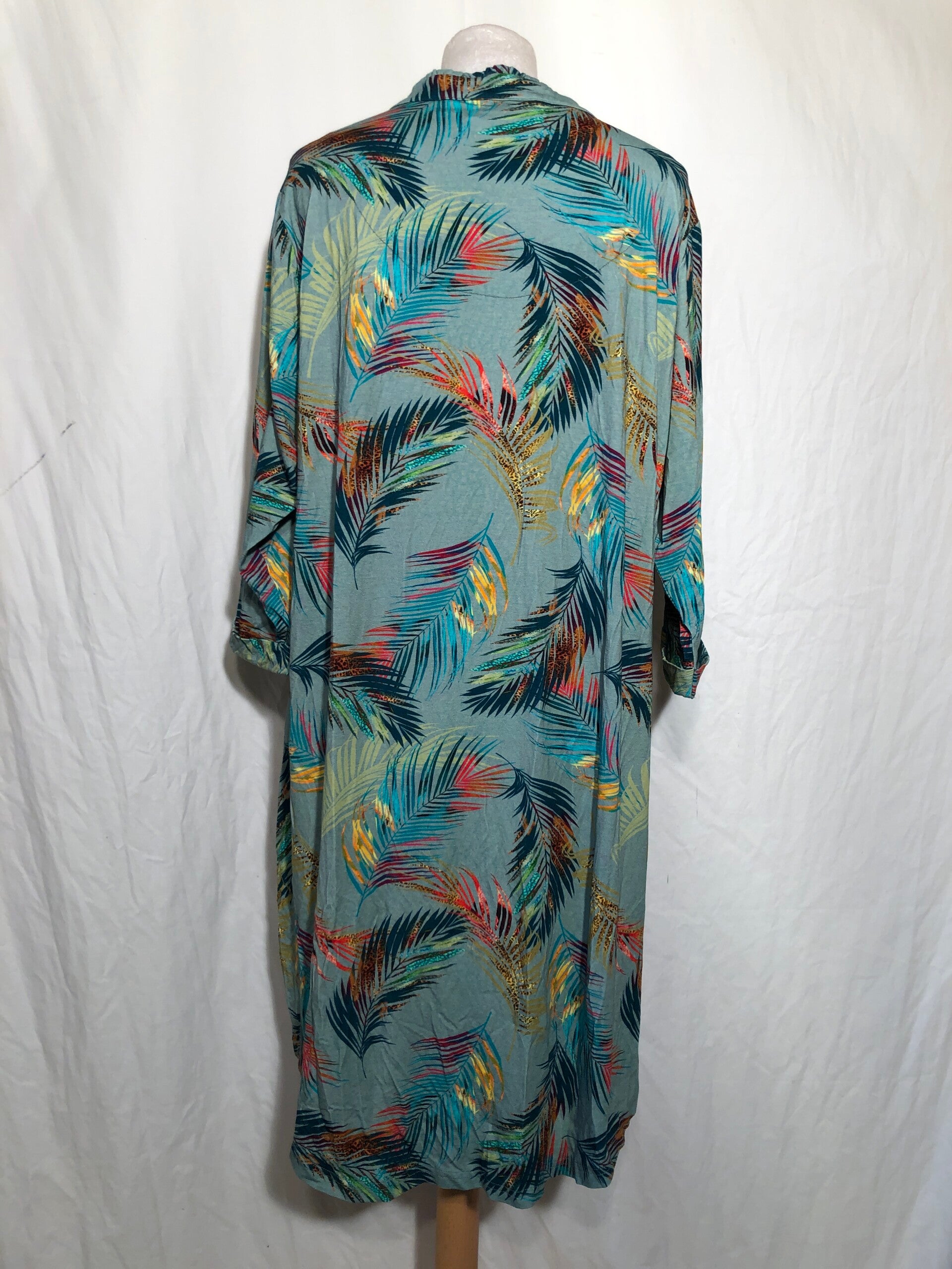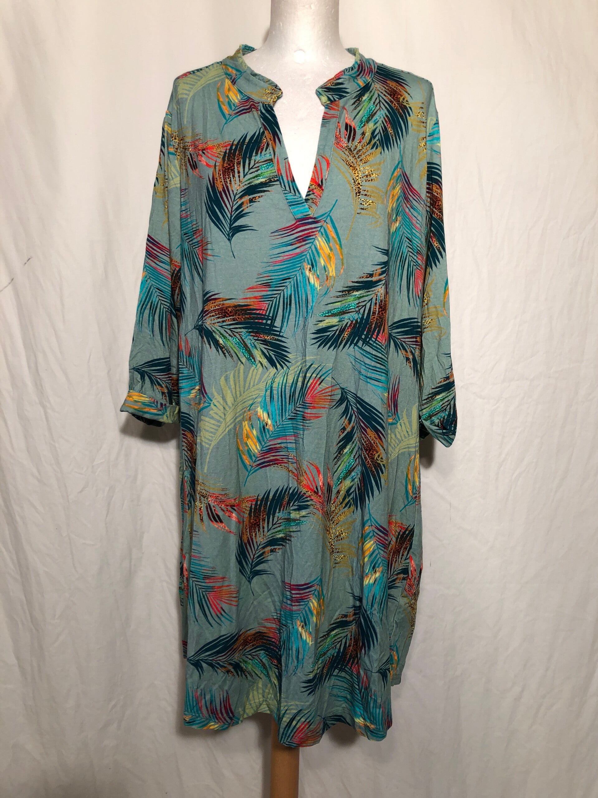 Didi zachtgroene jurk met bladeren, driekwart mouwen en diep decolleté maat 48