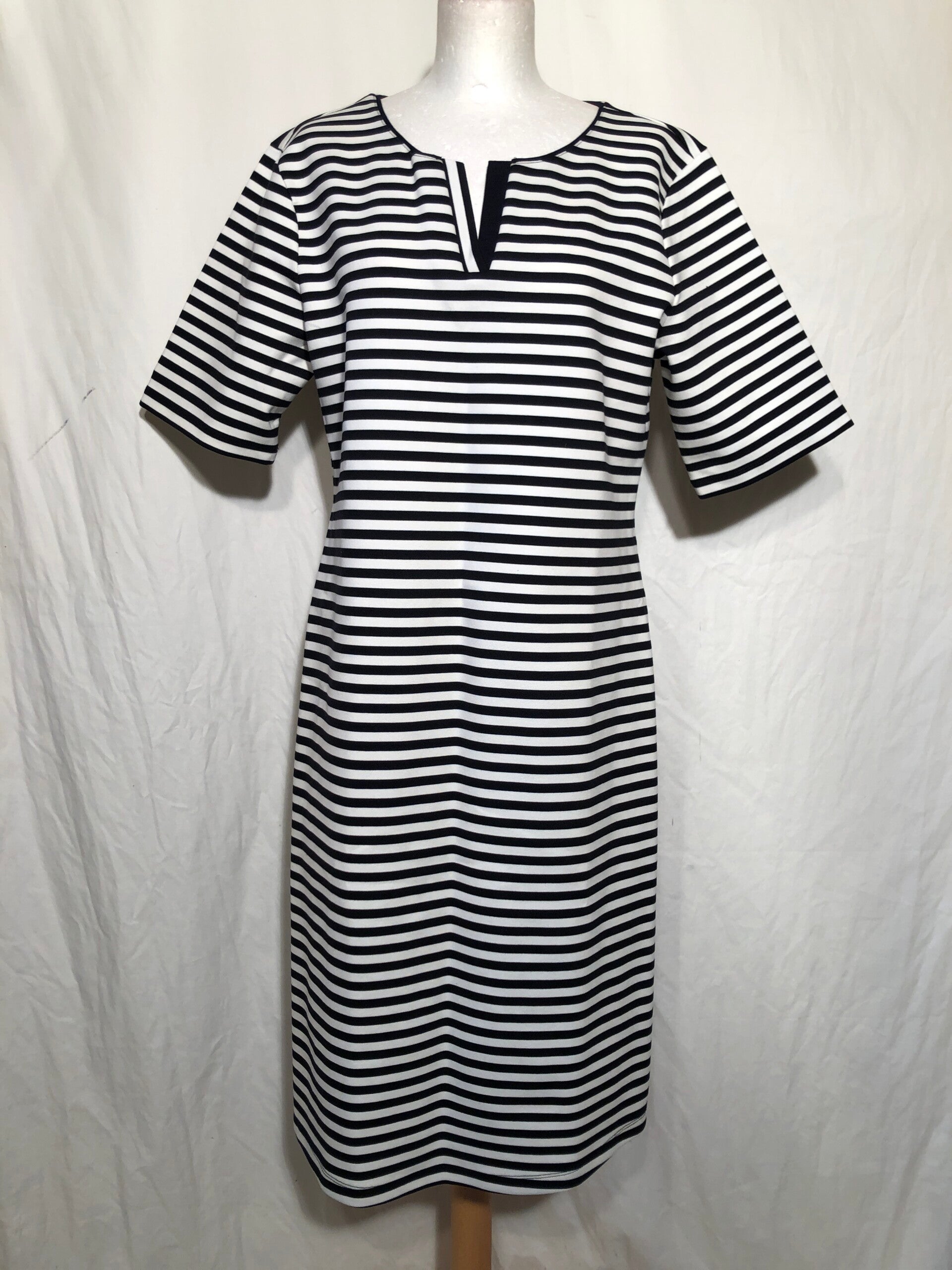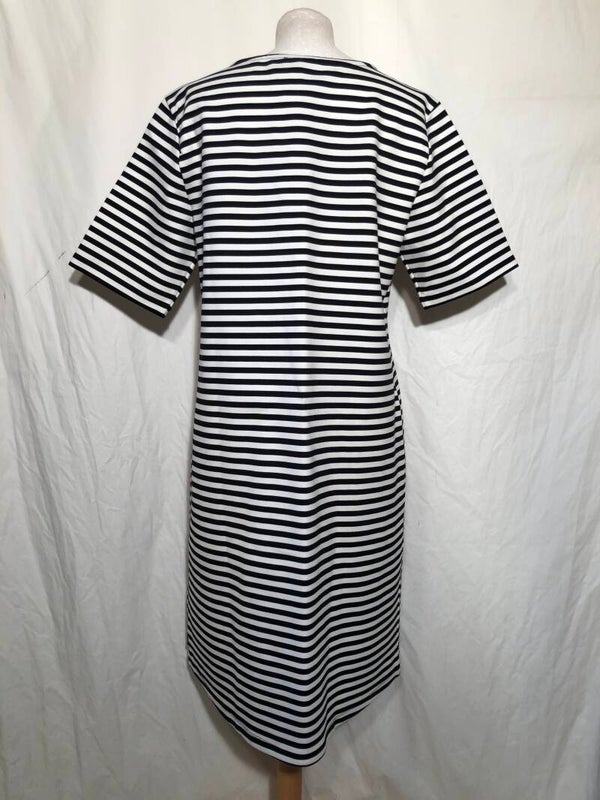 Didi zwart/wit horizontaal gestreepte jurk met Vhals maat XXL
