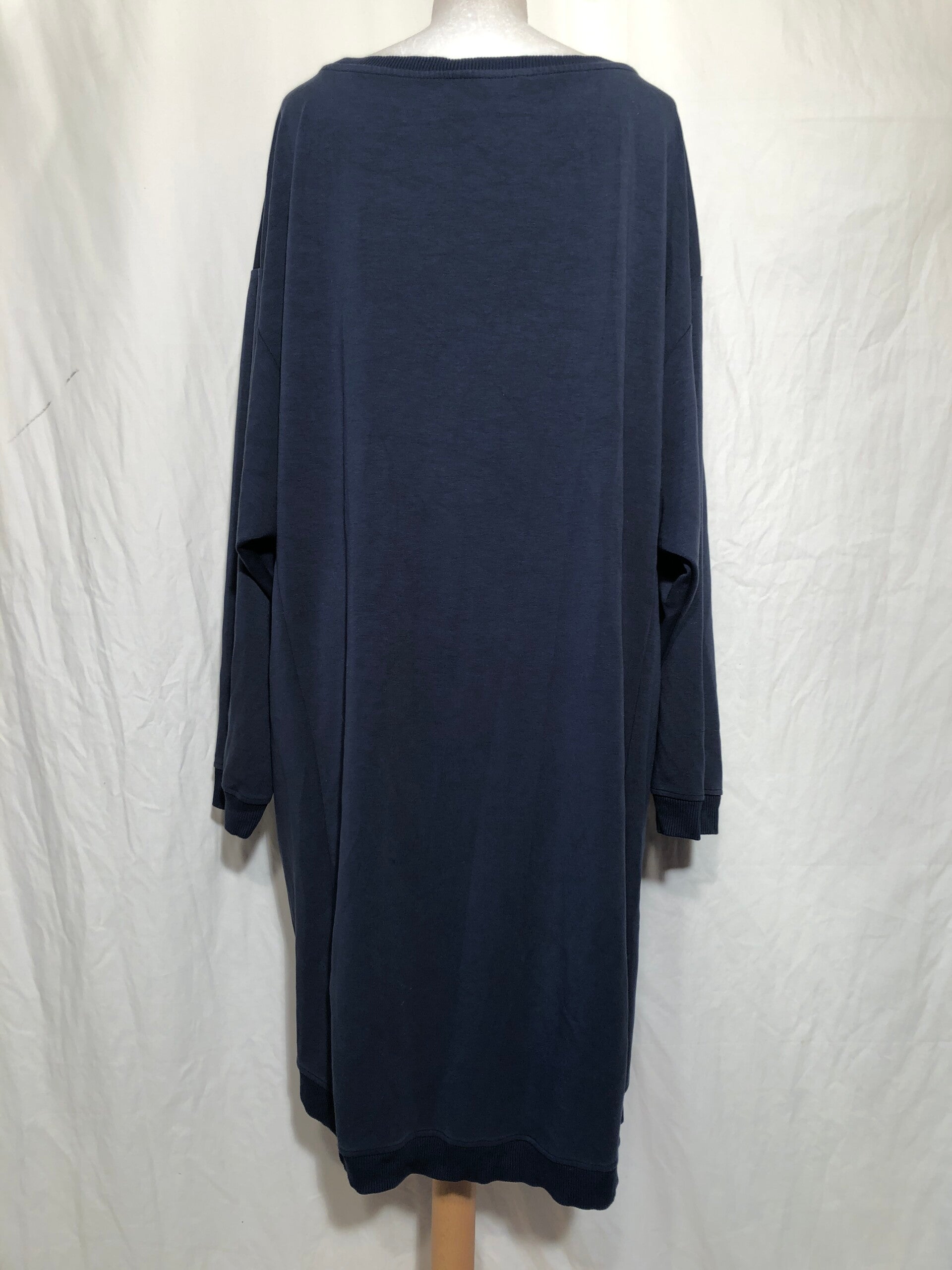 Didi blauwe sweater jurk met zakken op de zij en ronde hals maat 48