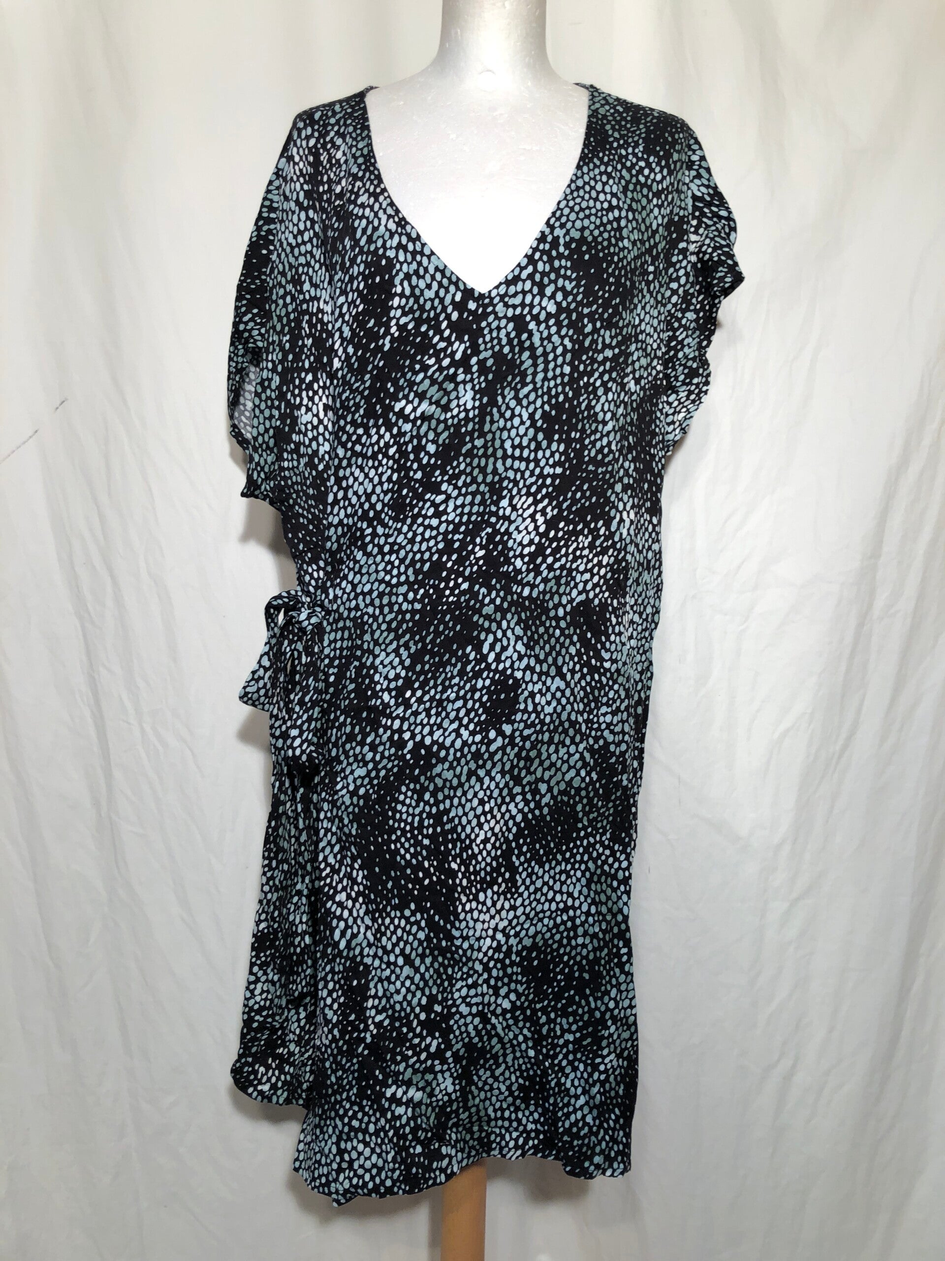 Didi zwarte jurk met groen/witte spikkels en strik op de zij maat 48