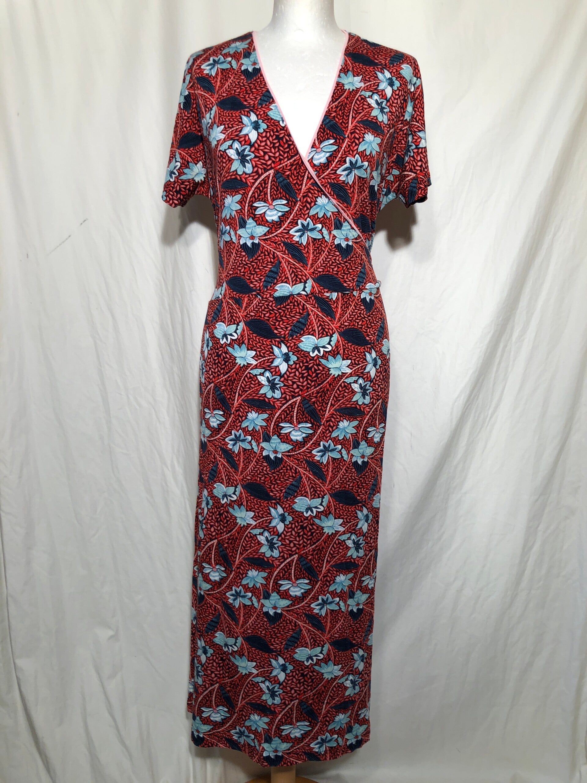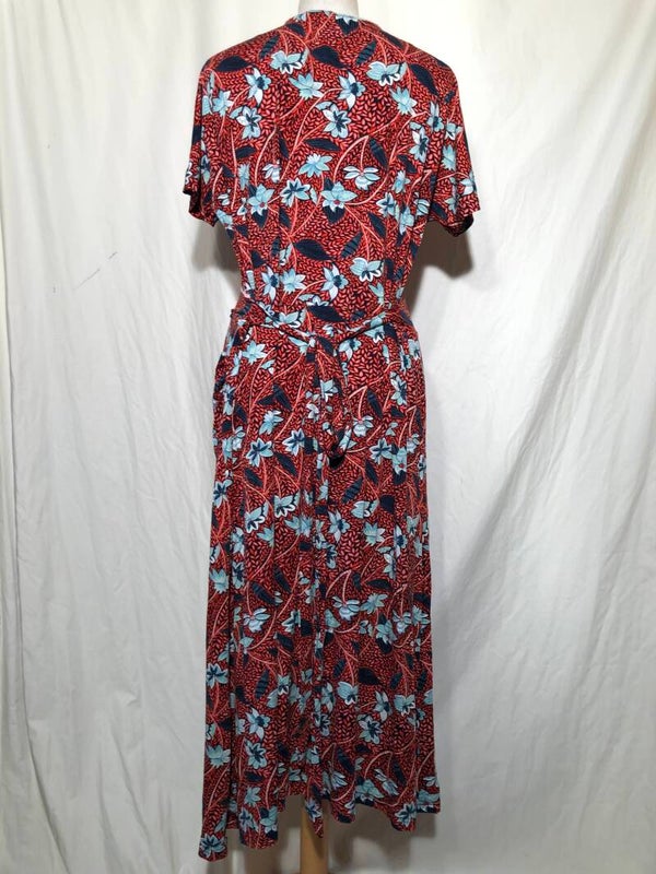 Didi rood gebloemde jurk met overslag op de voorzijde en strik op de achterzijde maat 48