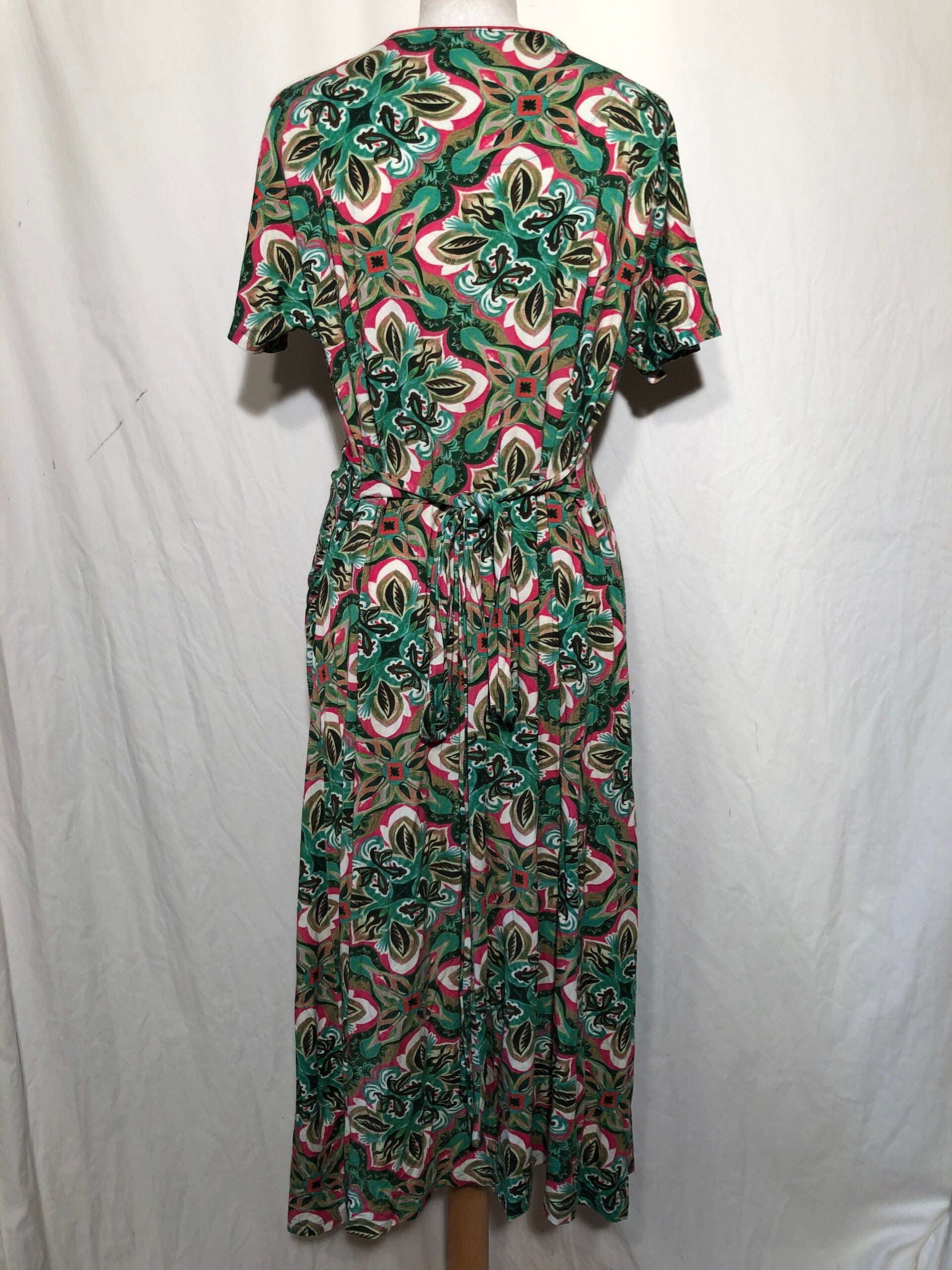 Didi groen print jurk met overslag op de buste en strik op de achterzijde maat 48