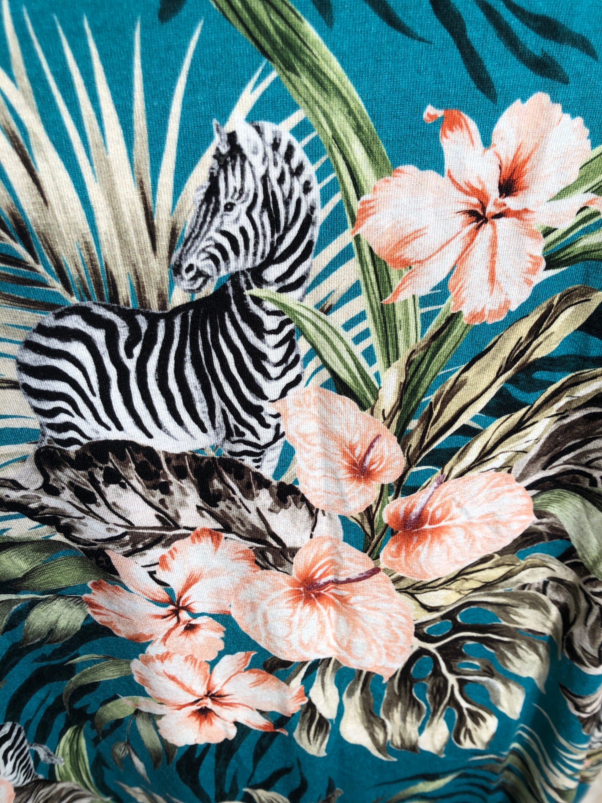 Didi groen lange blouse met bloemen en zebra's maat 48