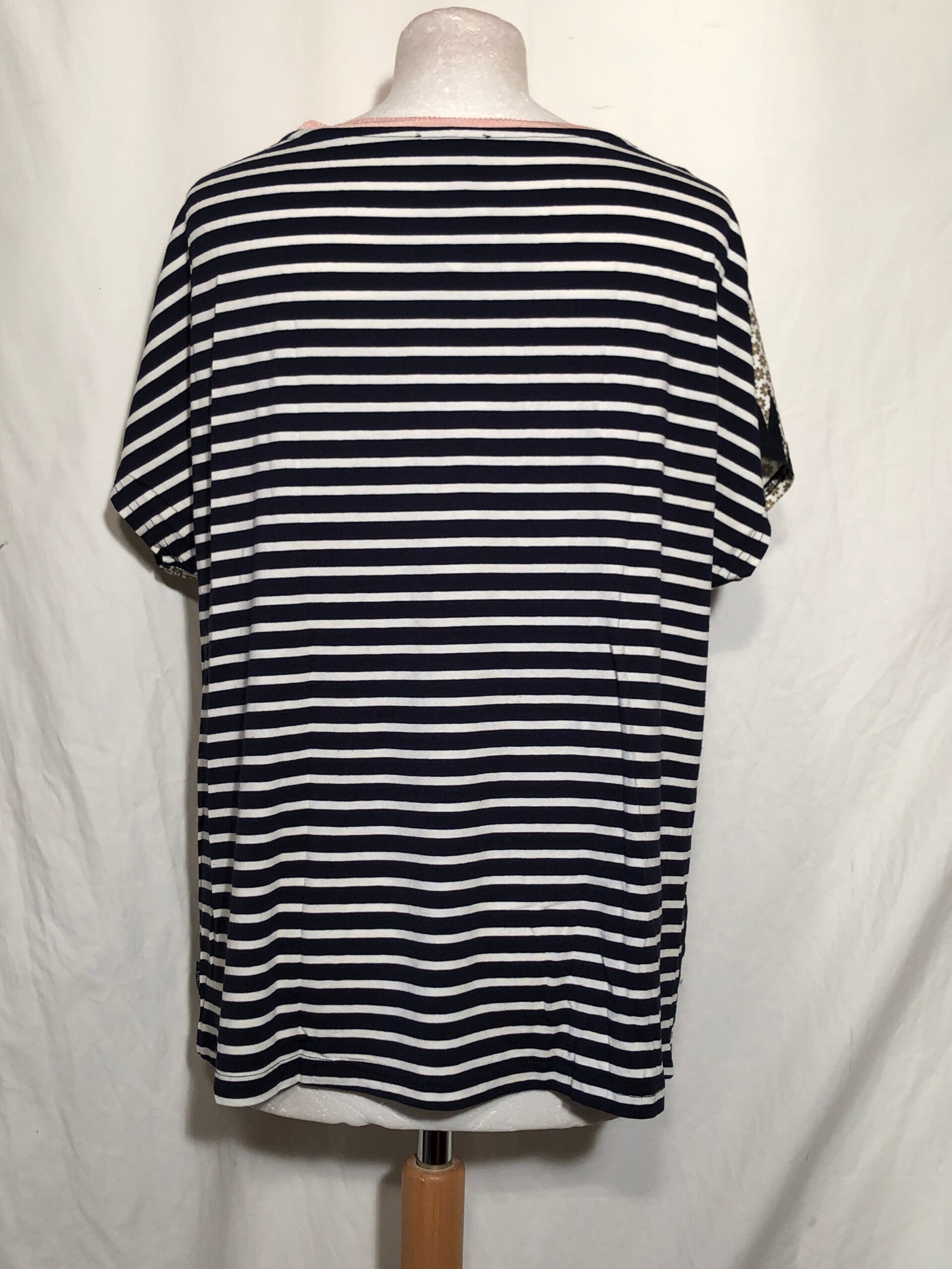 Didi meerkleurig print/horizontaal gestreept T-shirt met roze biesjes langs de halslijn maat XXL