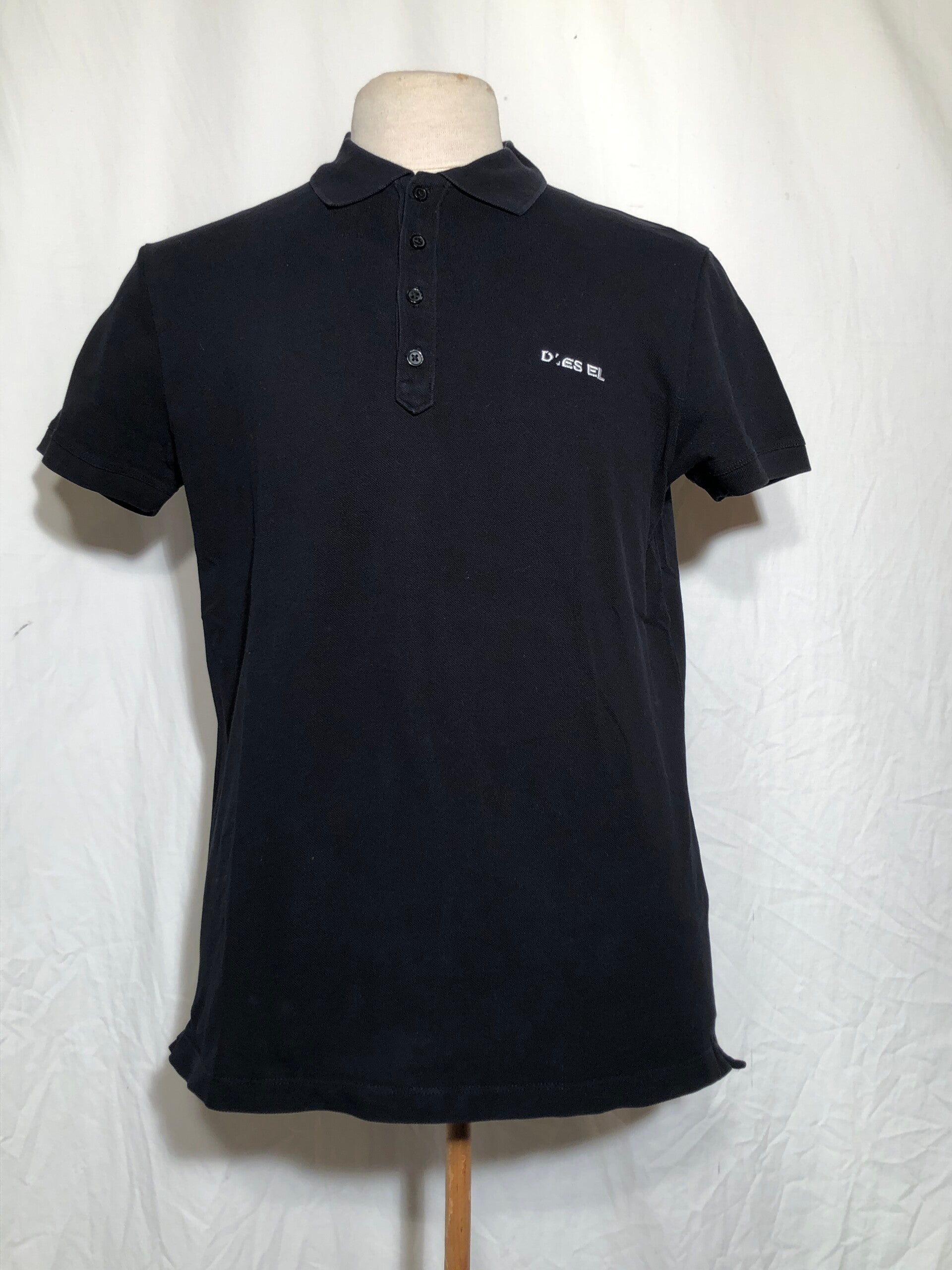 Diesel zwart effen polo met wit borduur op de borst en kleine splitjes op de zij maat XL