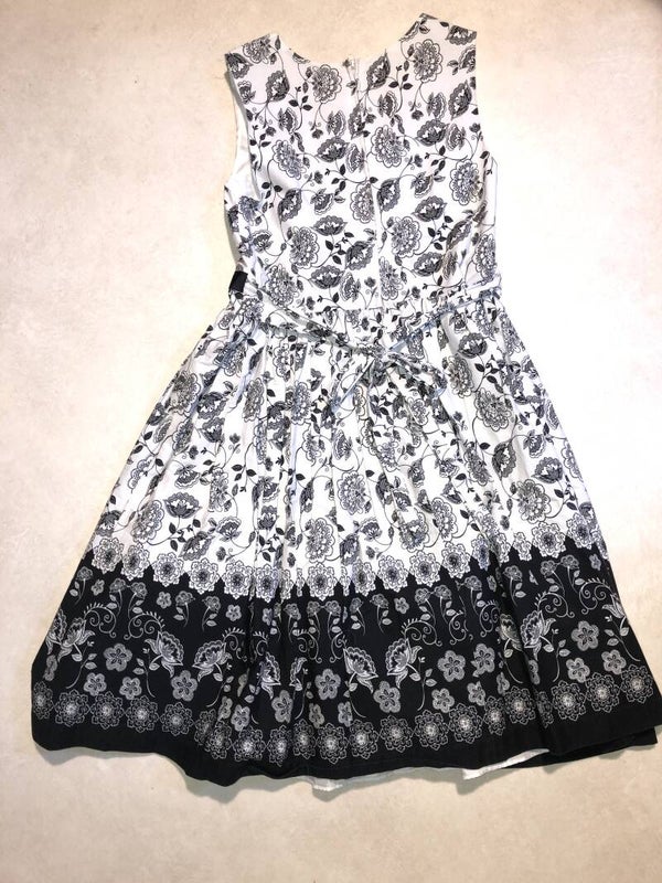 Bonnie Jean zwart/wit gebloemde jurk met strik op de rug en twee laags onderjurk maat 164