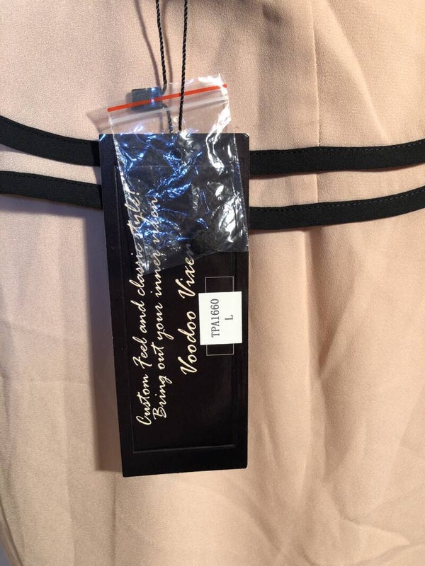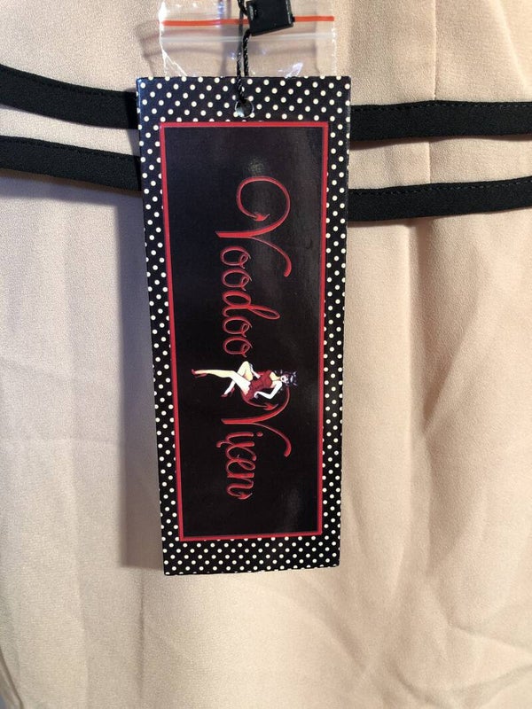 Voodoo Vixen huidkleurige retro blouse met kraag en strikje maat L