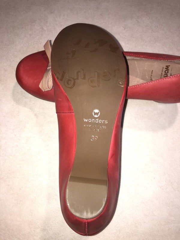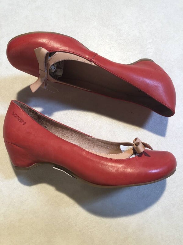 Wonders rood leder retro pumps met klein hakje en roze strikjes maat 39