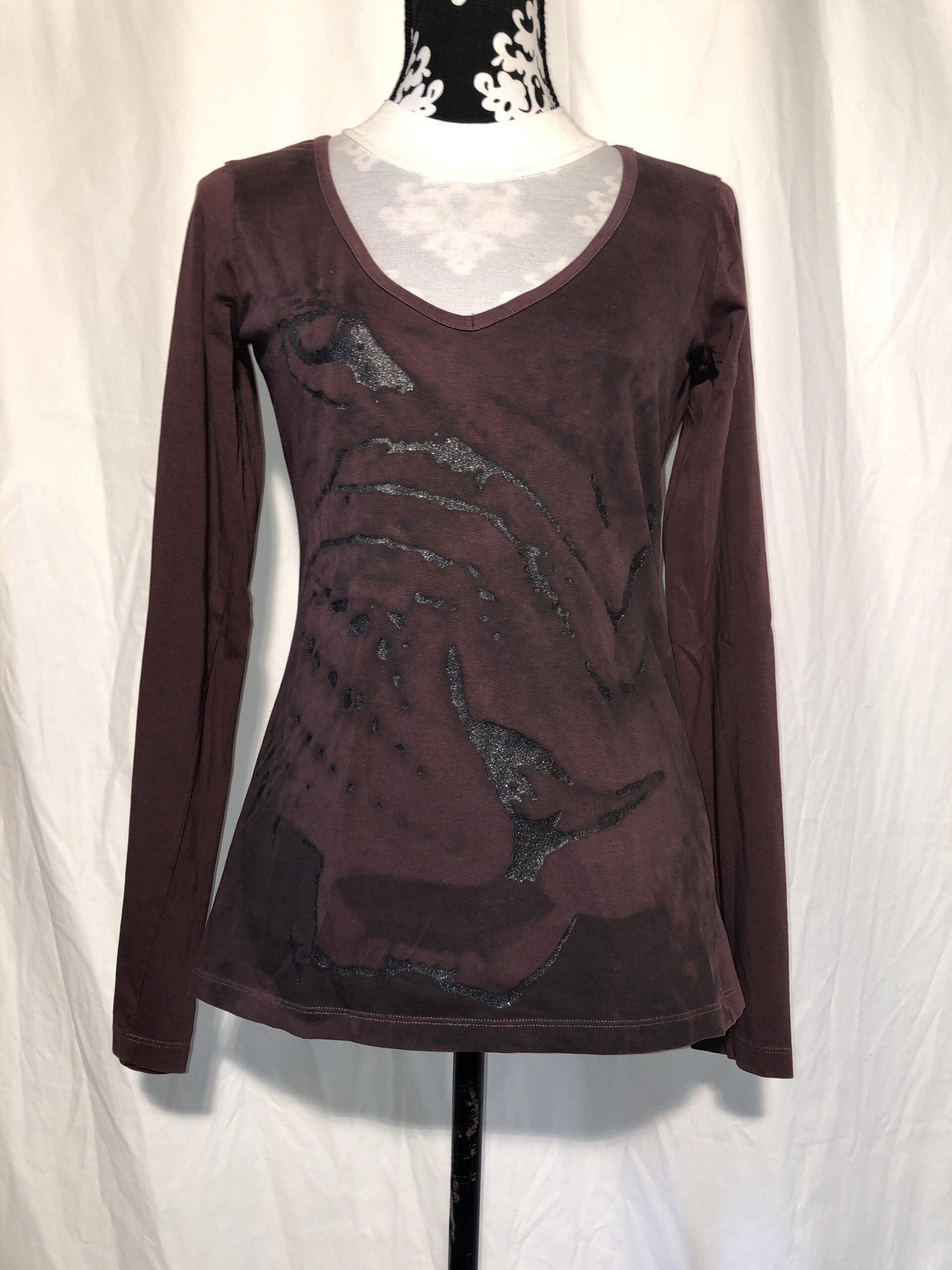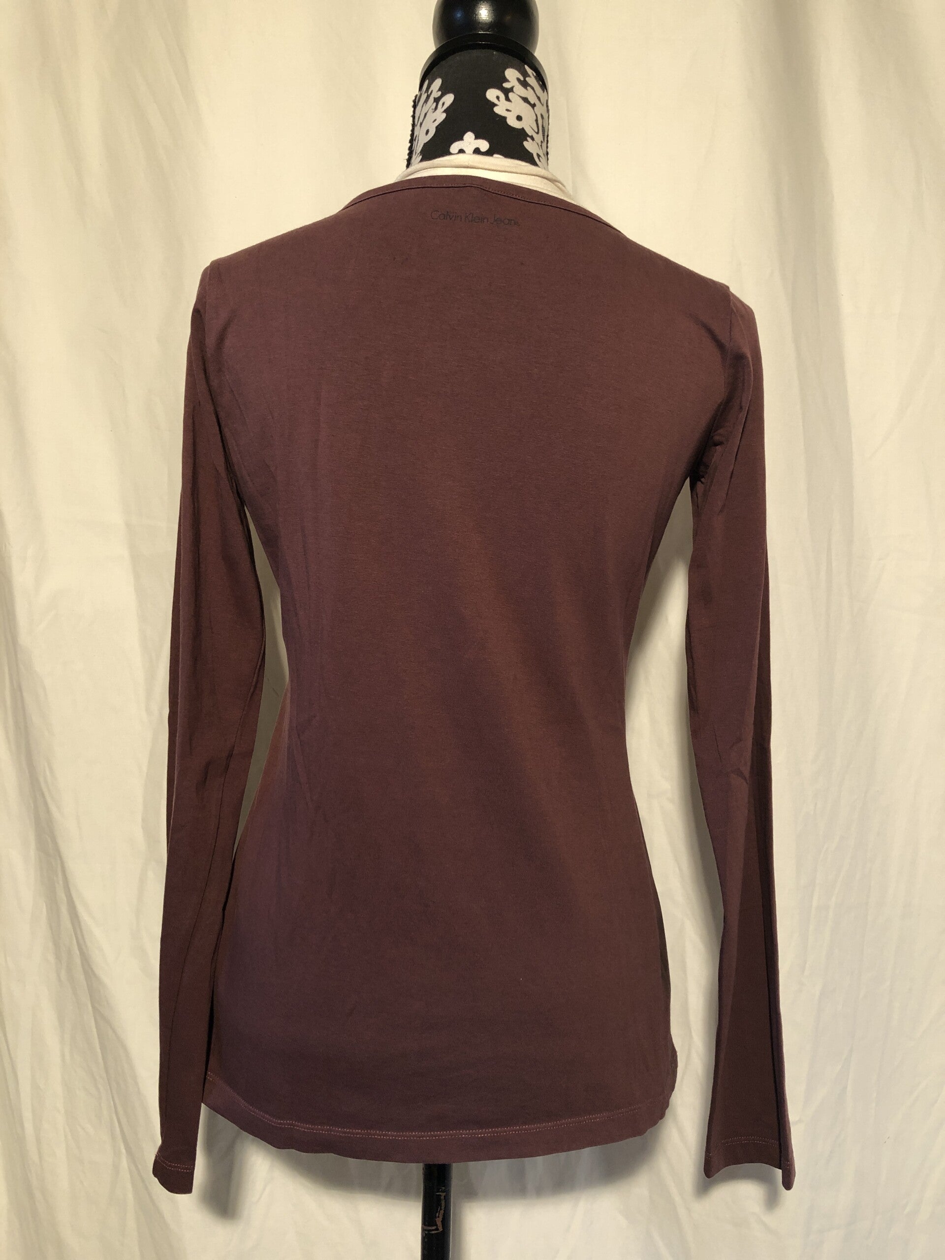 Calvin Klein bordeauxrood longsleeve met glitters en diepe V Hals maat L