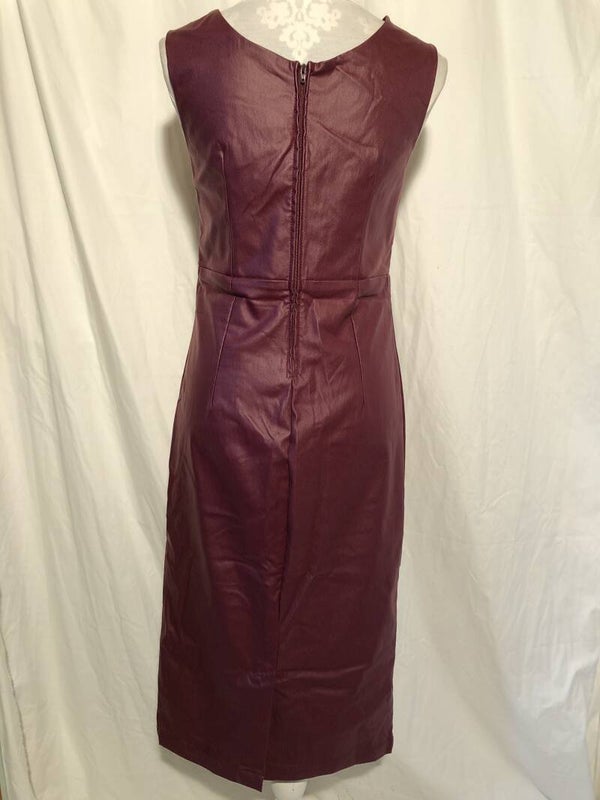 Steady bordeauxrode retro lederlook pencilldress maat XL