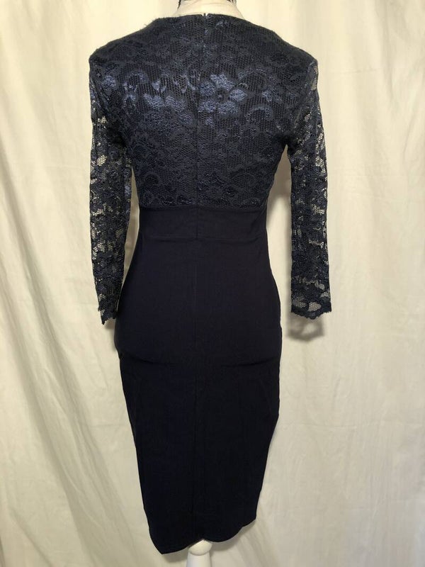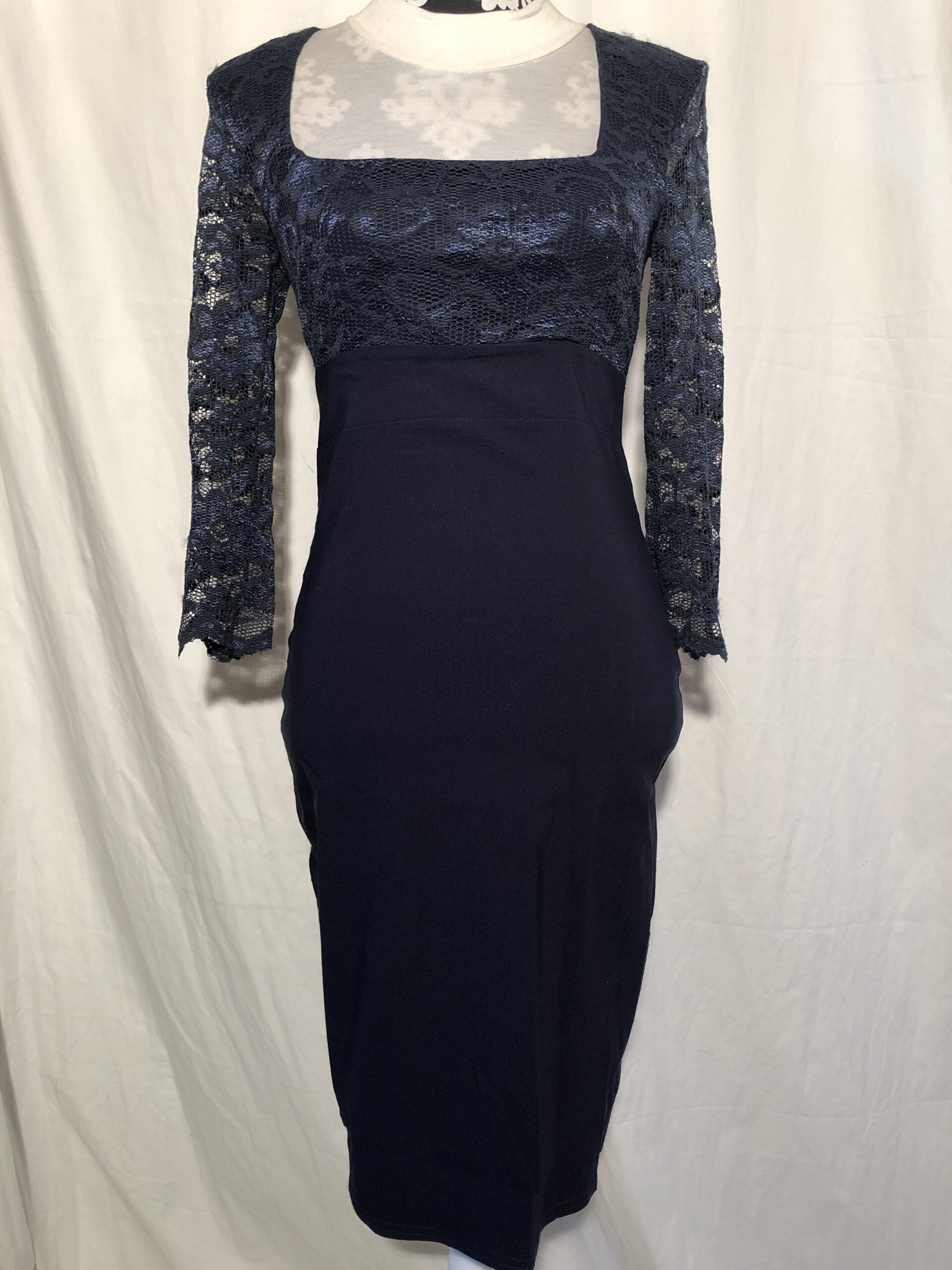 Vintage chic for top vintage blauw/kant retro pencilldress maat M