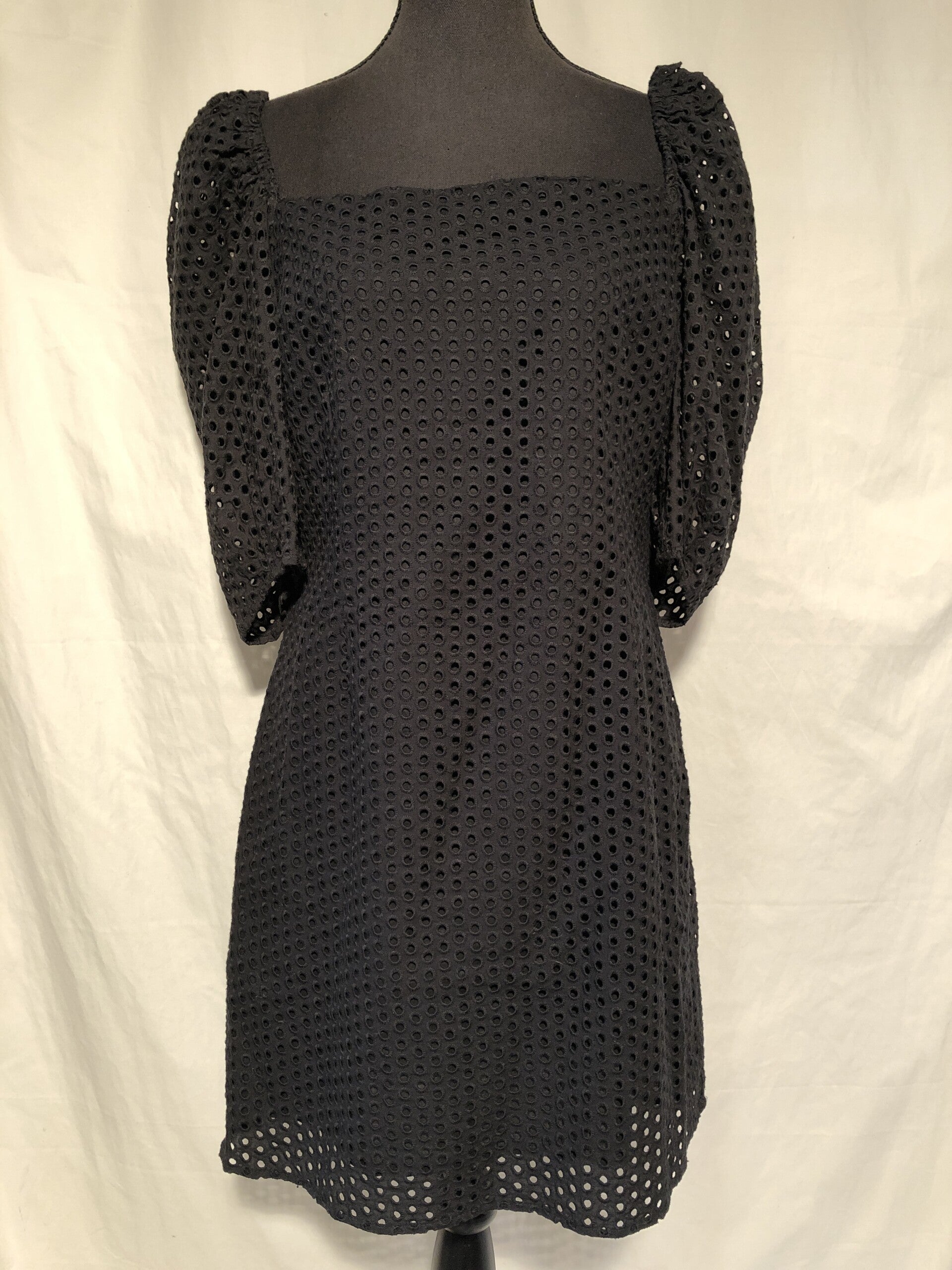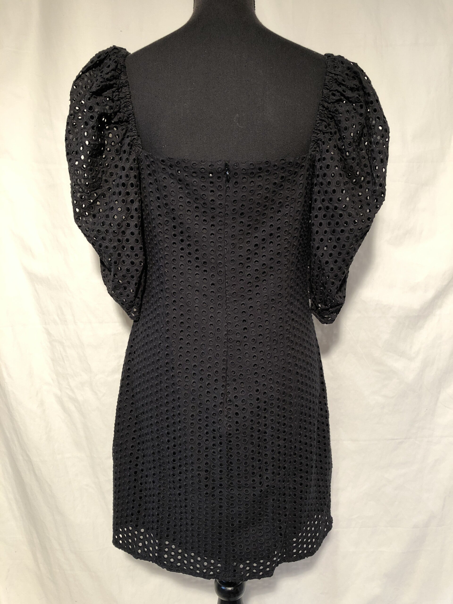 H&M zwarte broderie jurk met pofmouwen maat 42