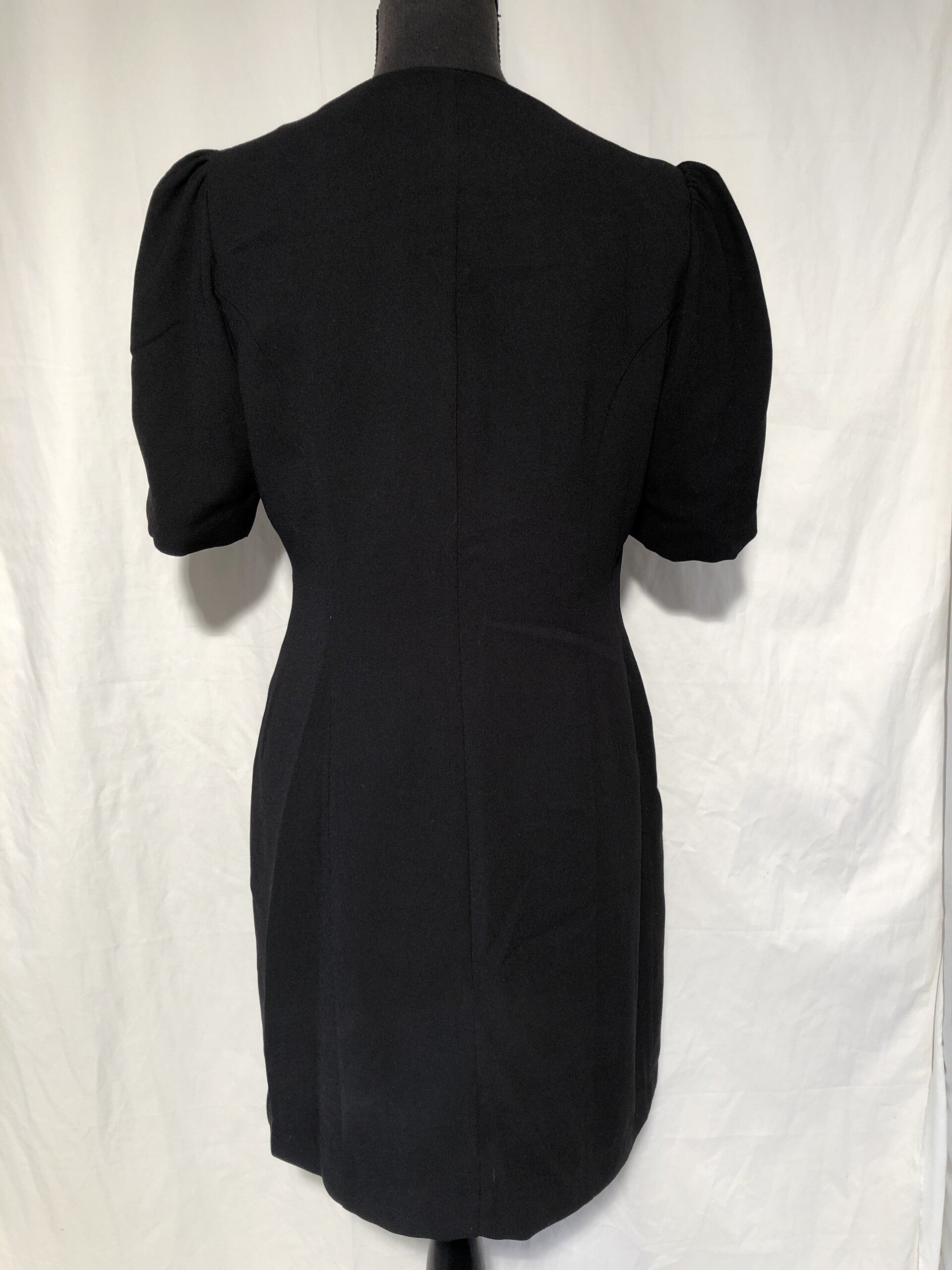 Mango zwarte jurk met knopen en pofmouwtjes maat L overslag