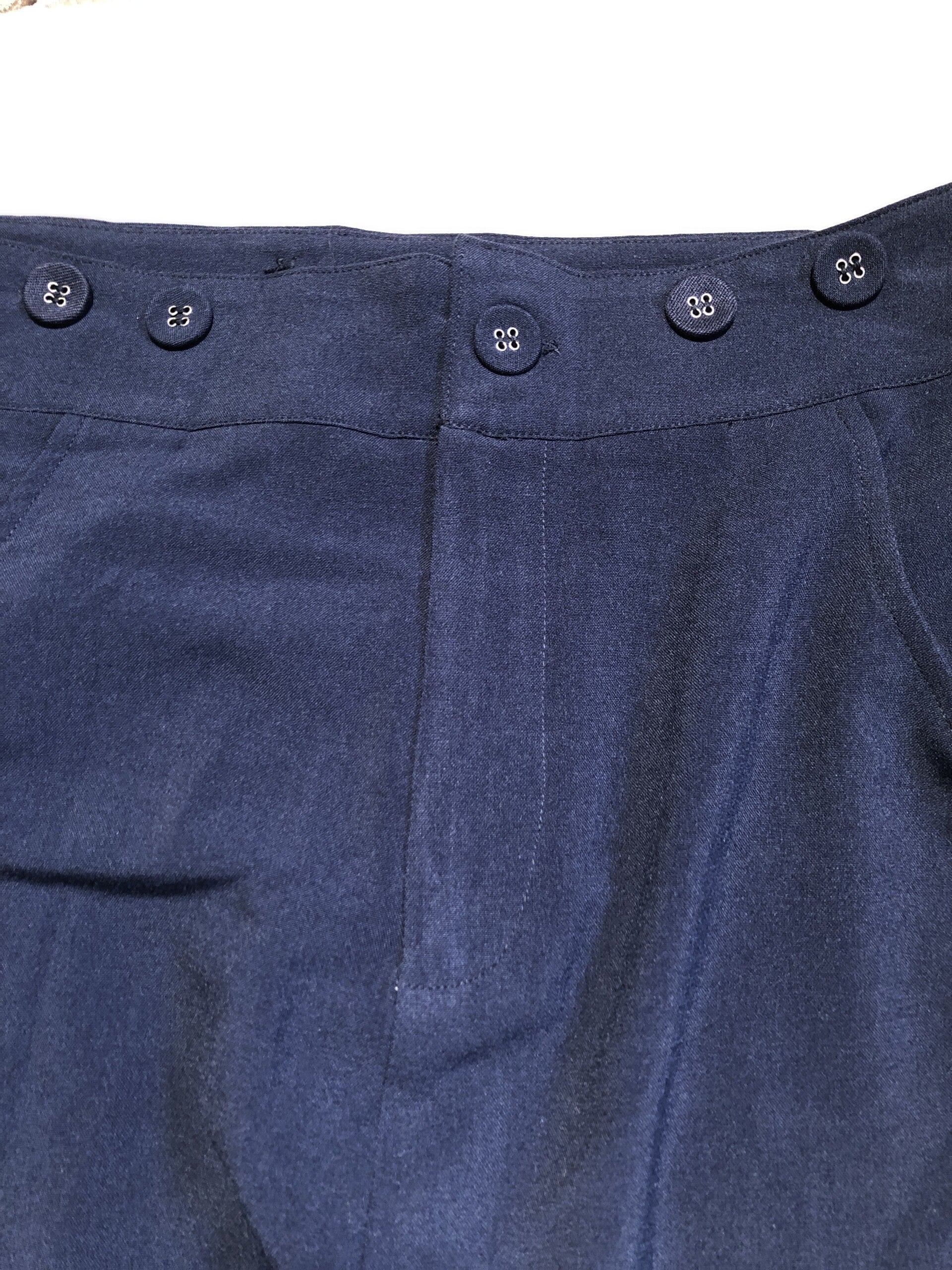 sluit met rits en knoop, steekzakken en heeft sierknoopjes waar je ook een bretels aan kunt bevestigen