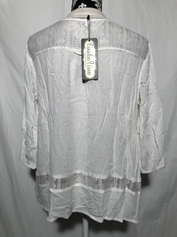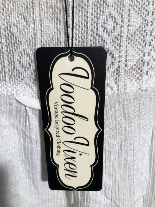 Voodoo Vixen wit retro 70's tuniek met kanten biesjes maat M