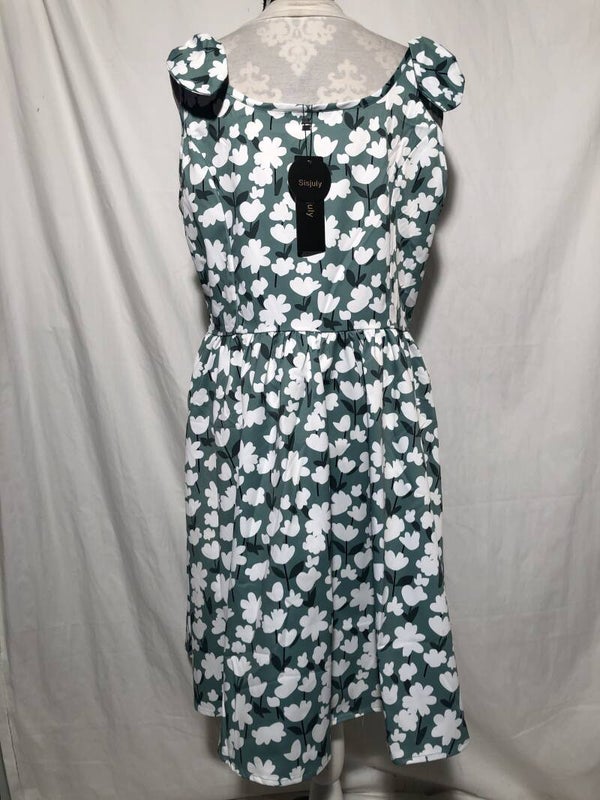 Sisjuly Grasgroene jurk met witte bloemen en sierstrikken op de schouders maat 4XL