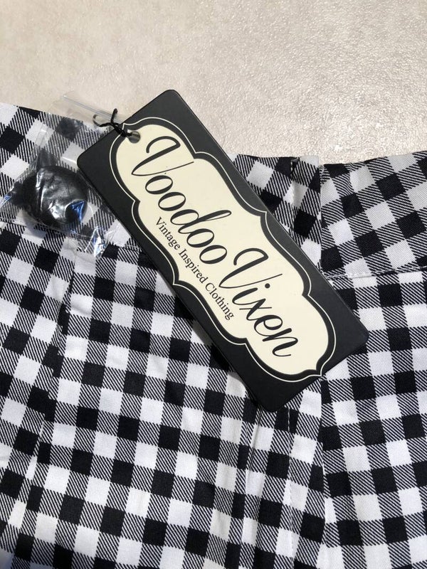 Voodoo Vixen zwart/wit retro geruit short met zakken en zwarte sier knopen maat M