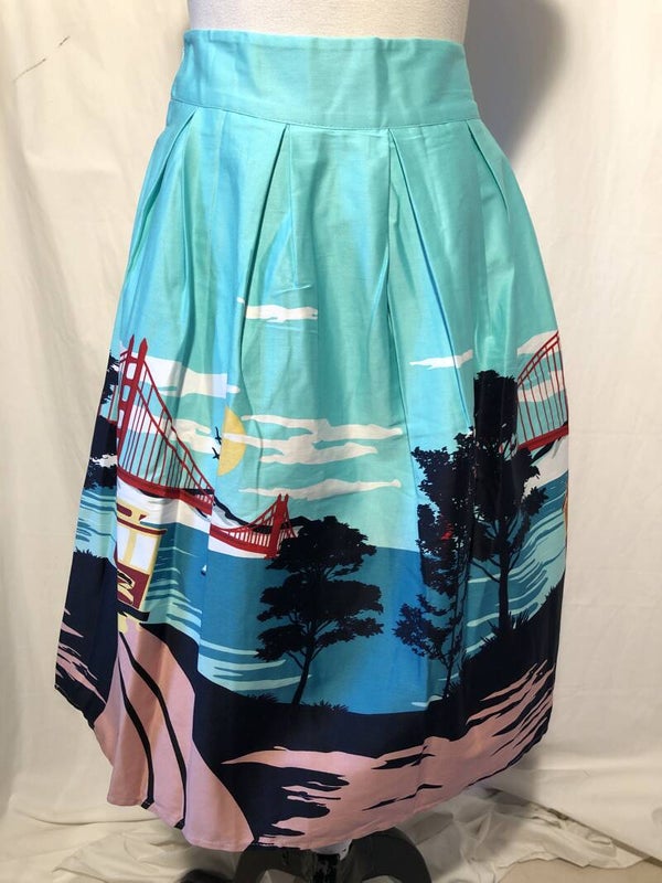 Retro swing rok met golden gate bridge print maat L
