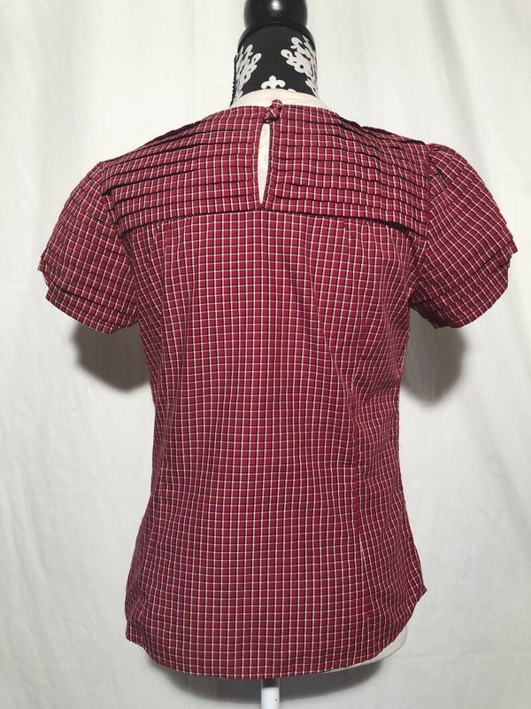 Warehouse rood geruit top met strik op de voorkant en strookjes op de mouwtjes maat 40