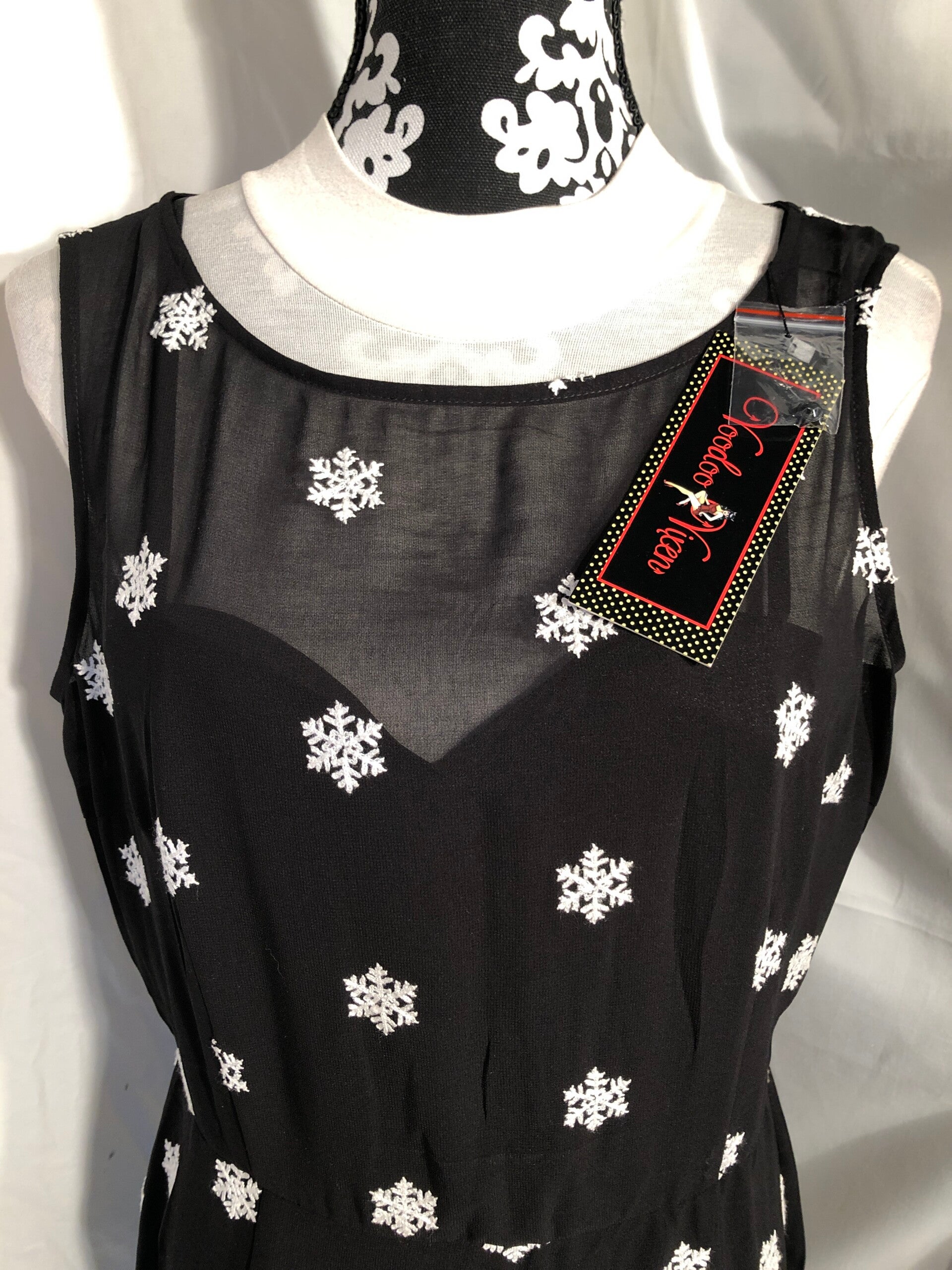 Voodoo Vixen zwart retro dubbellaags jurk met geborduurde sneeuwvlokjes maat L