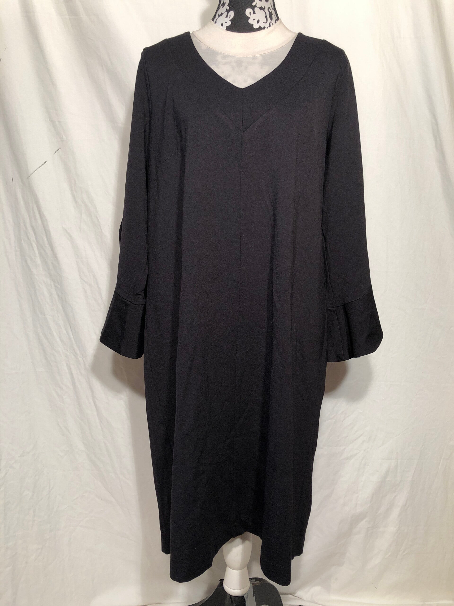 Mat zwart lange jurk met ruches langs de mouwen maat 44/46