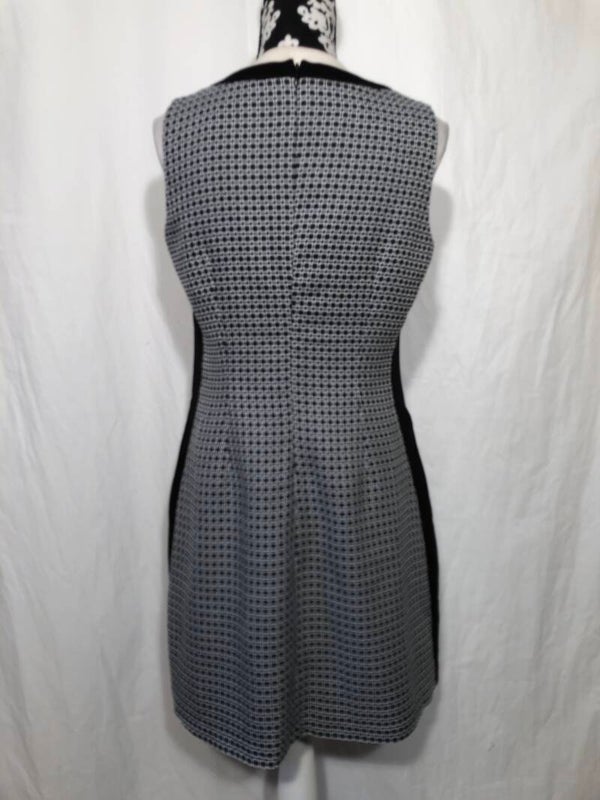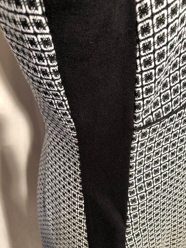 Next zwart/wit print jurk met zwarte biezen op de zij voor afslankend effect Maat 42