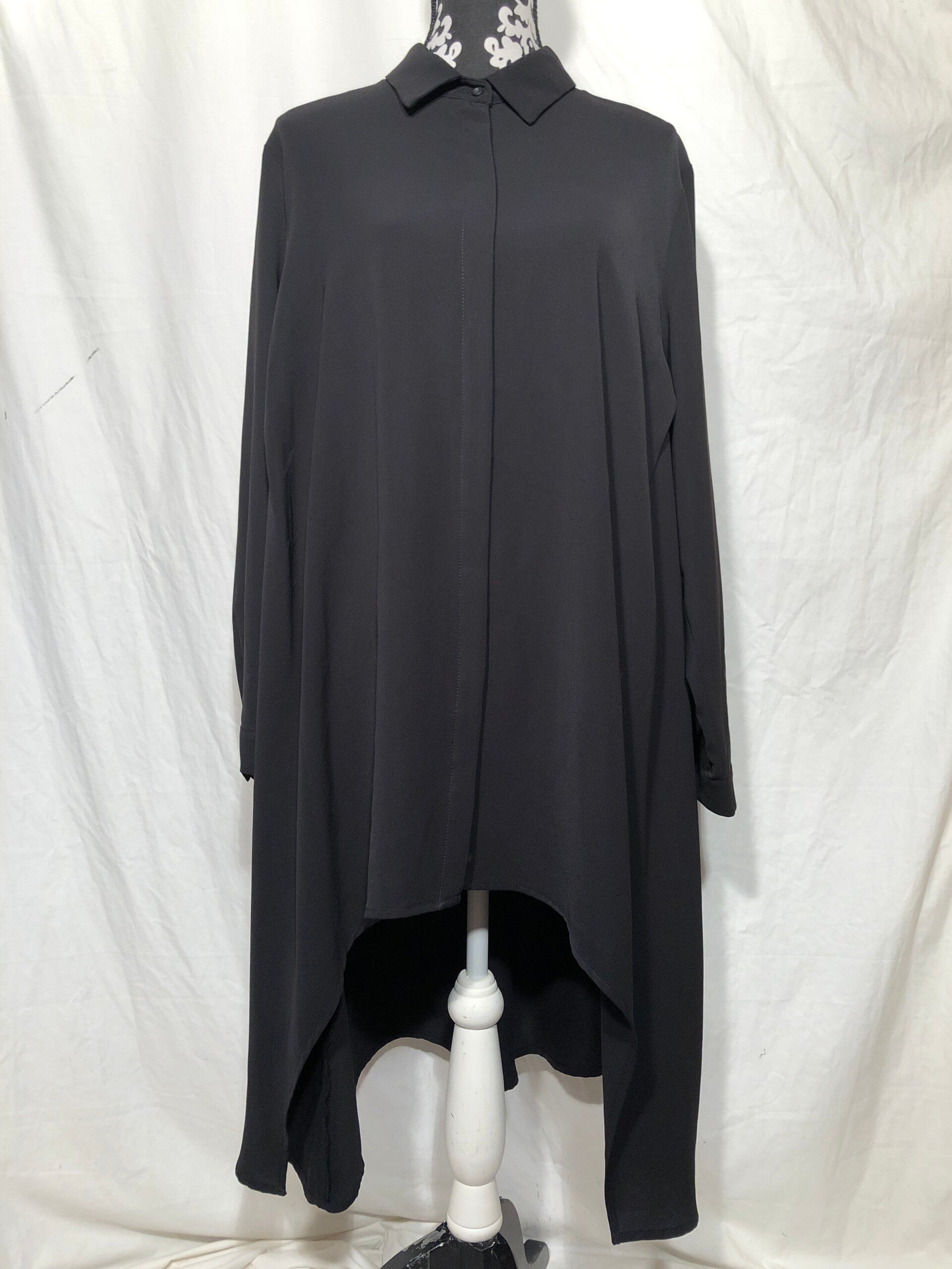 Mat zwarte blouse jurk met blinde knoopsluiting maat 44
