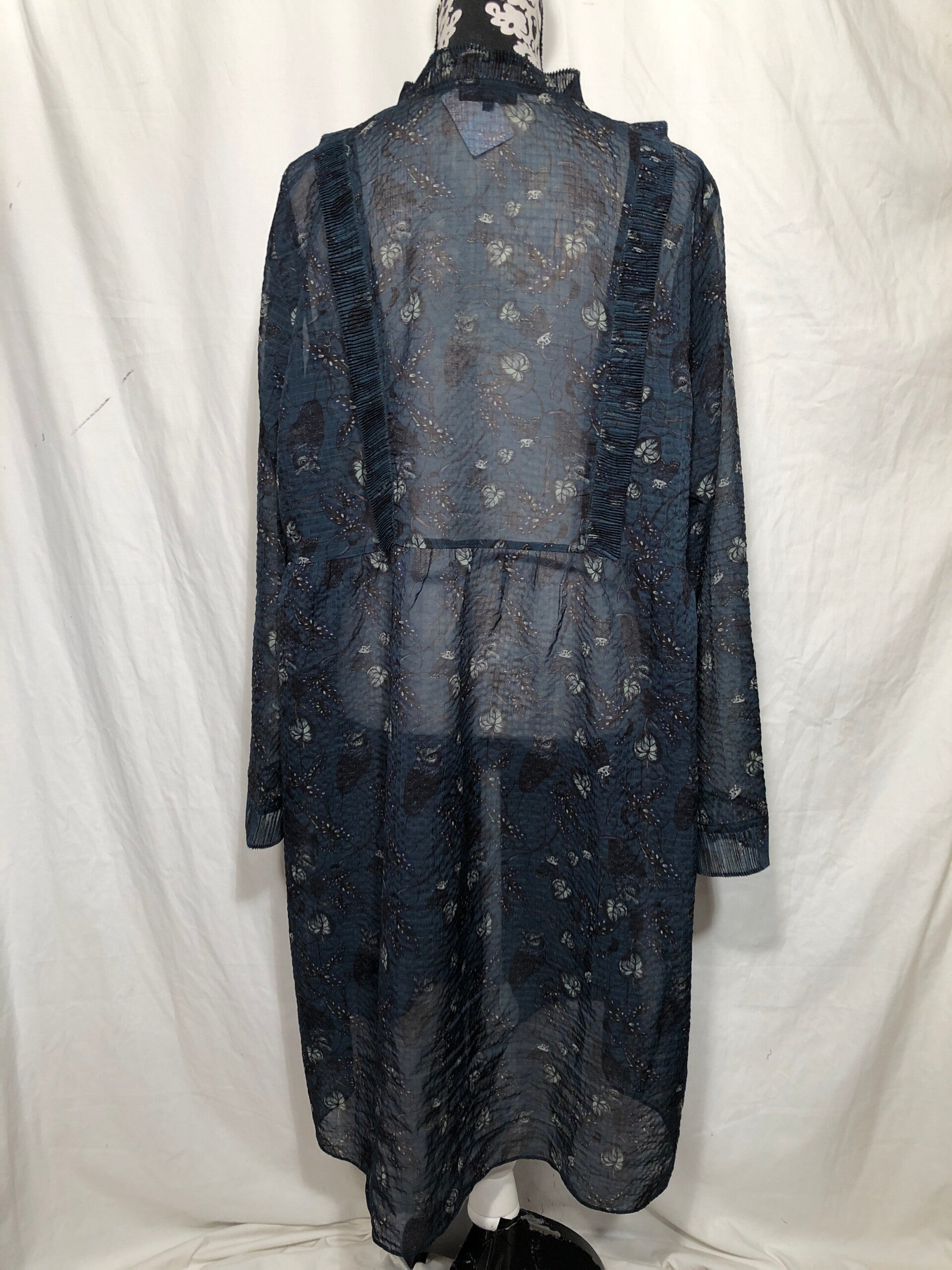 Didi donkergroene doorschijnende jurk met plissé langs de kraag, buste en op de achterzijde maat 48