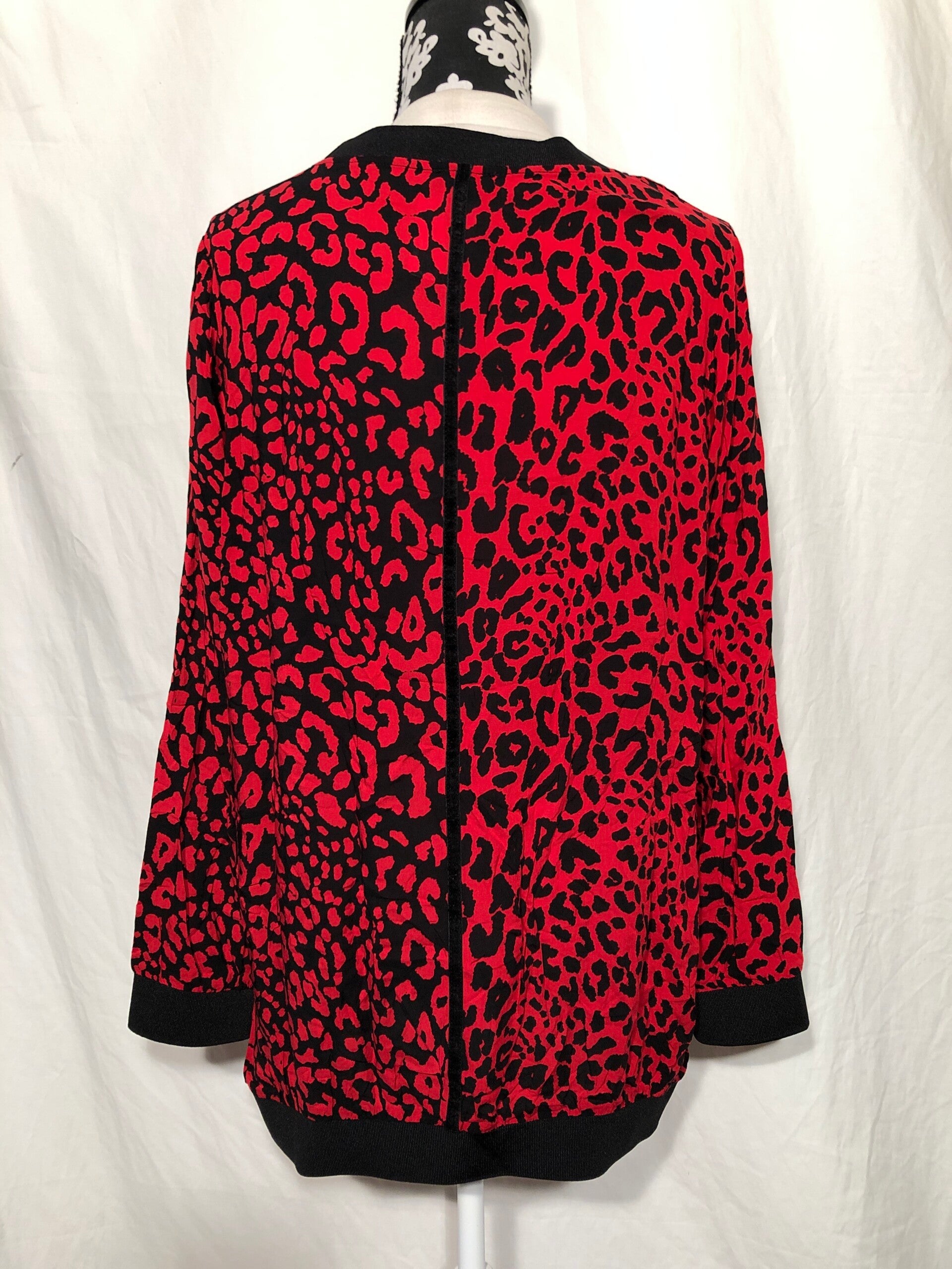 Yesta rood/zwart Leopard print tuniek met zwarte bies op het midden maat 44