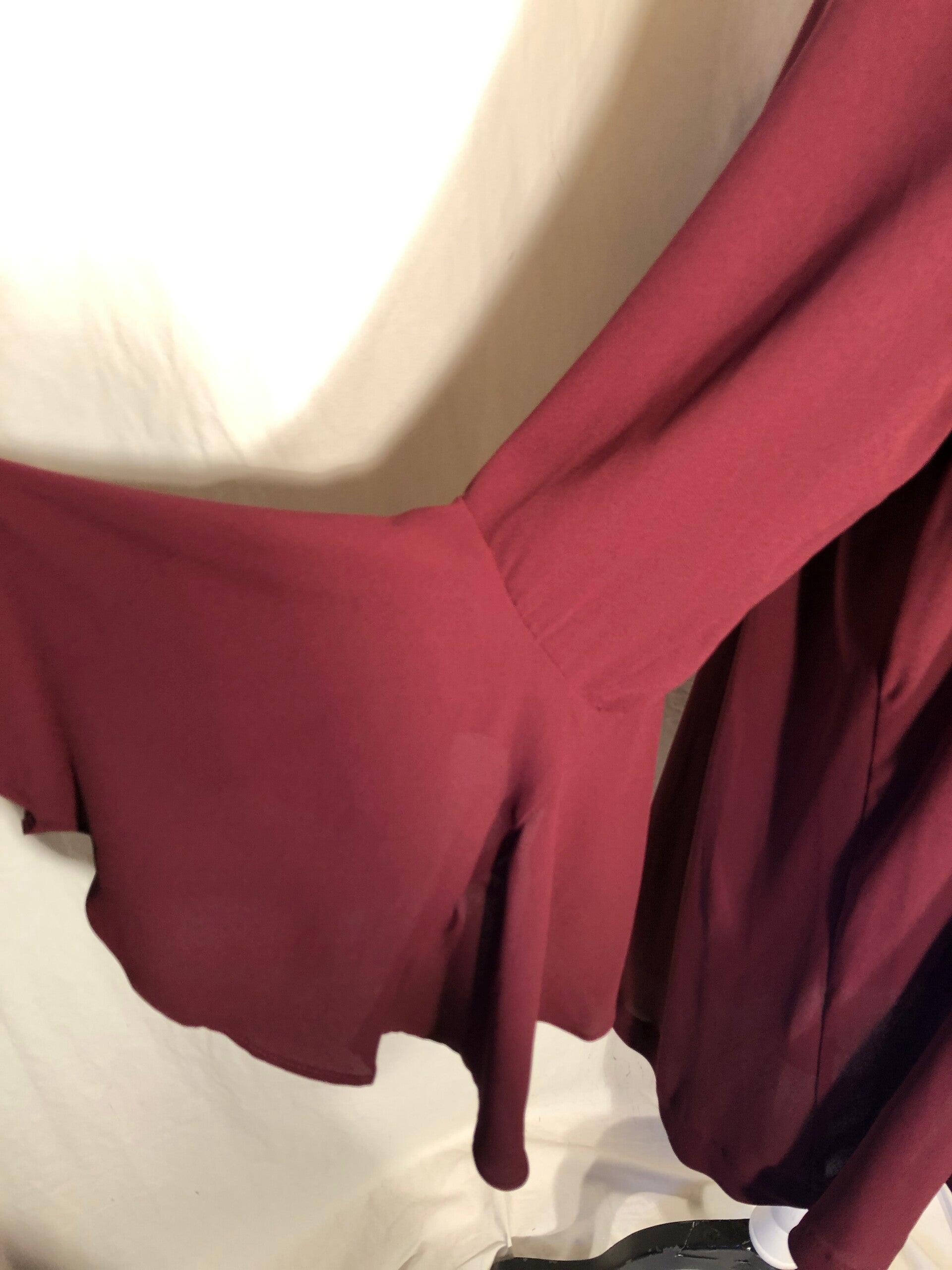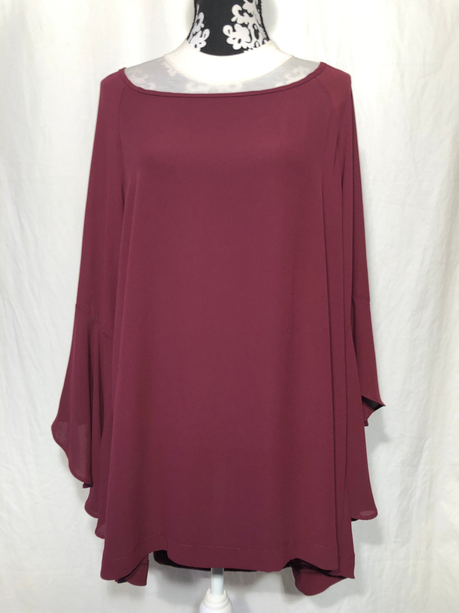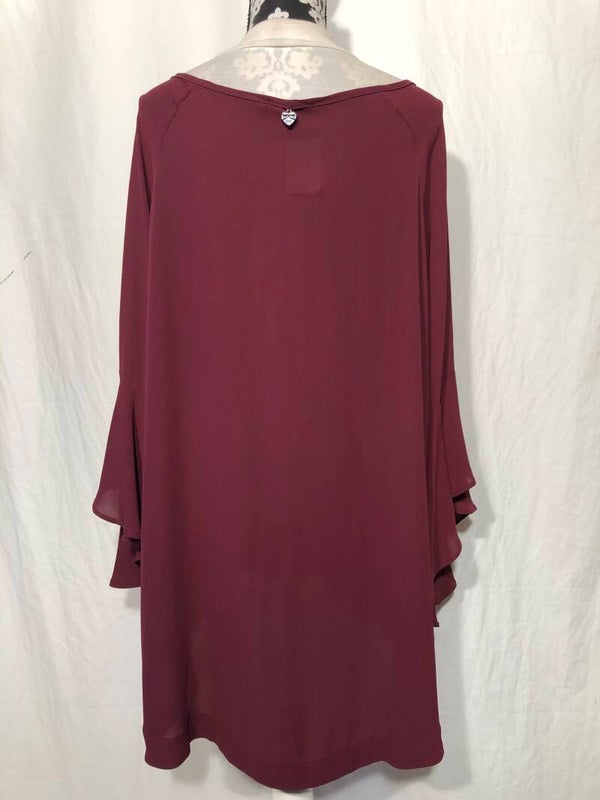 Mat bordeauxrood lang tuniek met wijd uitlopende mouwen maat 46