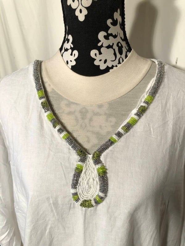 Via Appia Due wit tuniek met kralen bies langs de kraag maat 44
